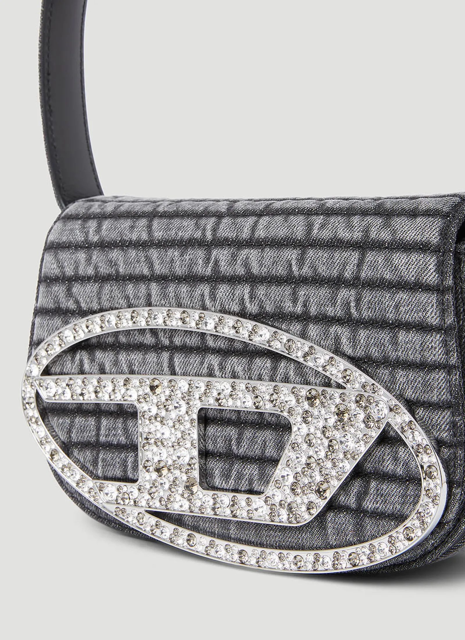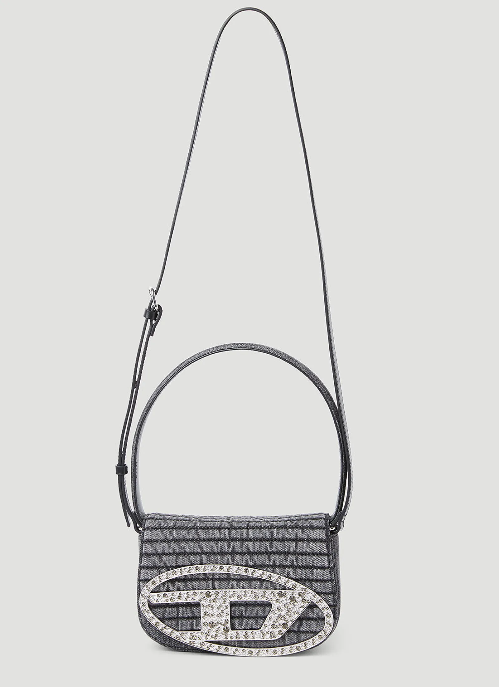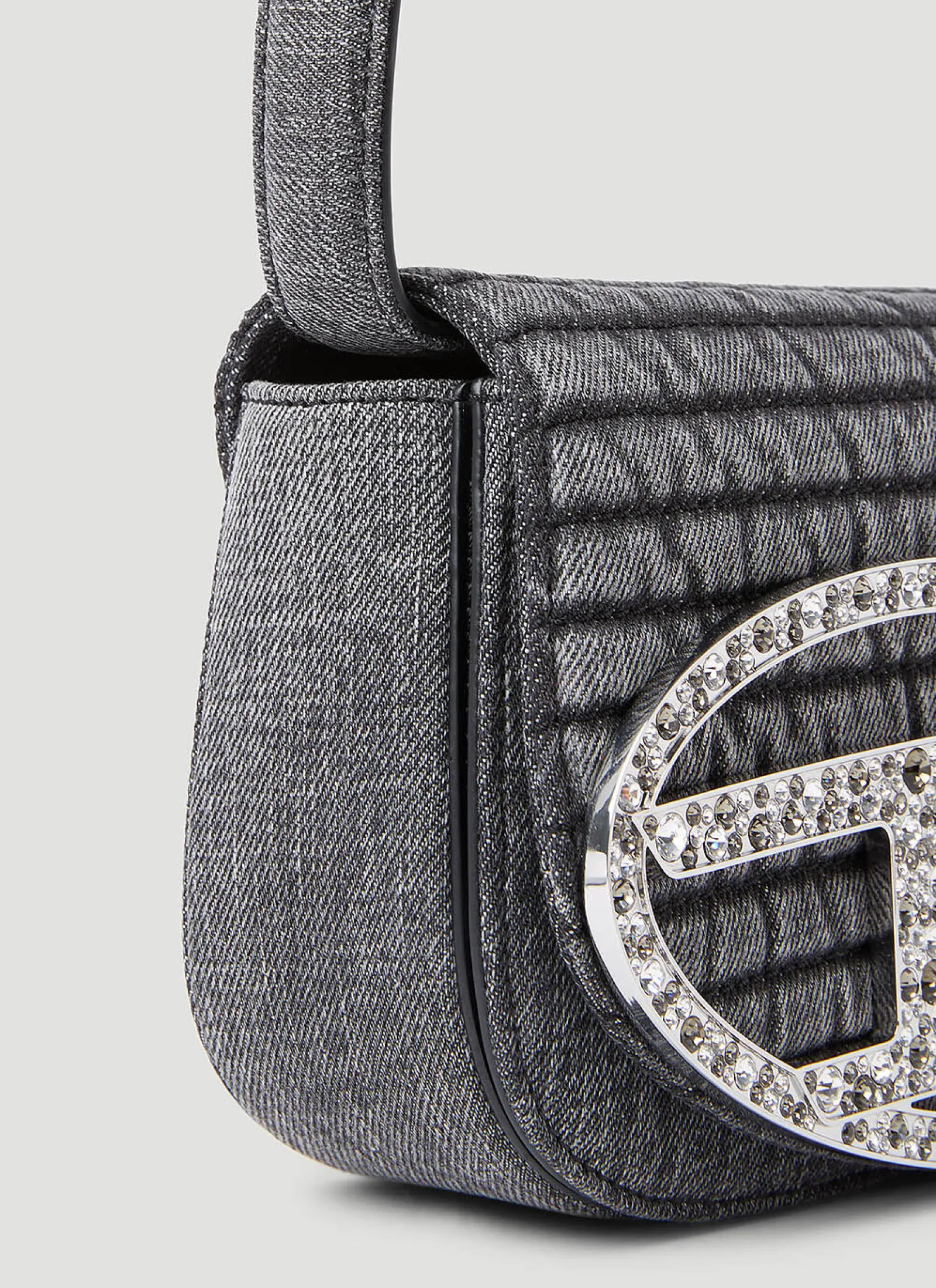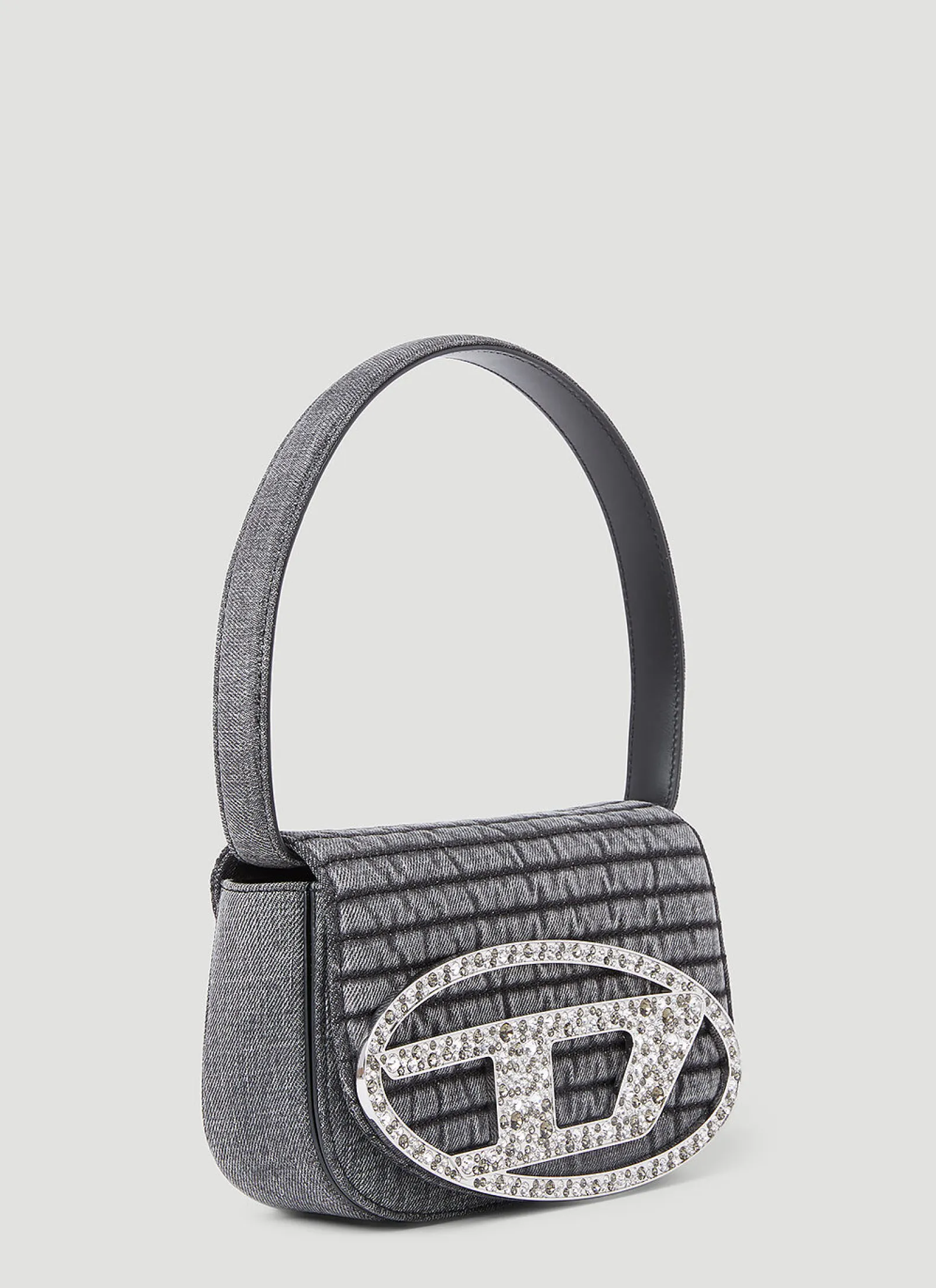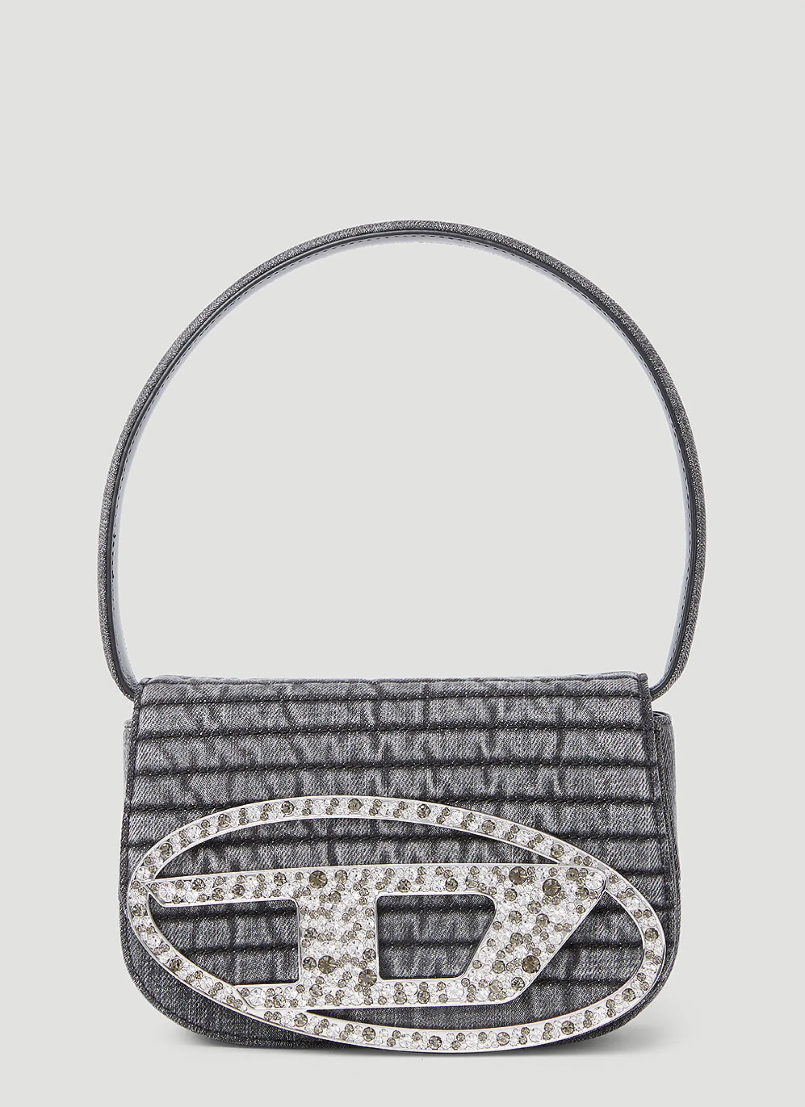 1Dr Shoulder Bag In Denim With Crystal-Embellished Logo Plaque At Front.