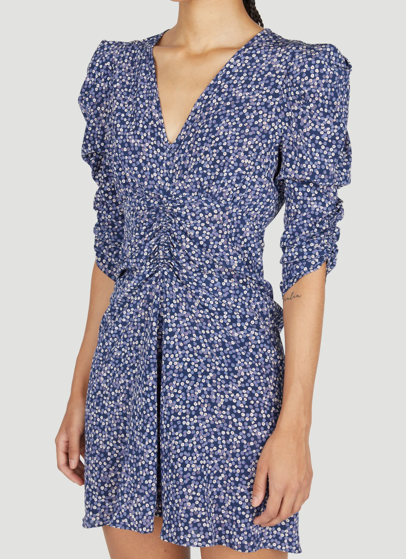Aliniza Silk-Blend Printed Dress With Ruched Front.