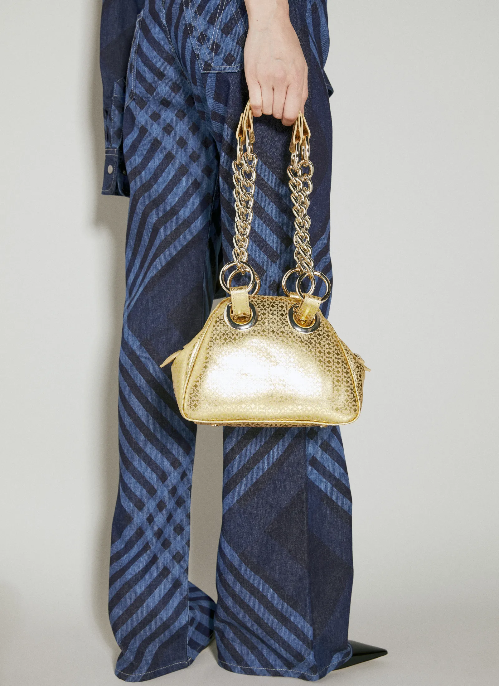 Archive Orb Chain Handbag In Metallic Finish.