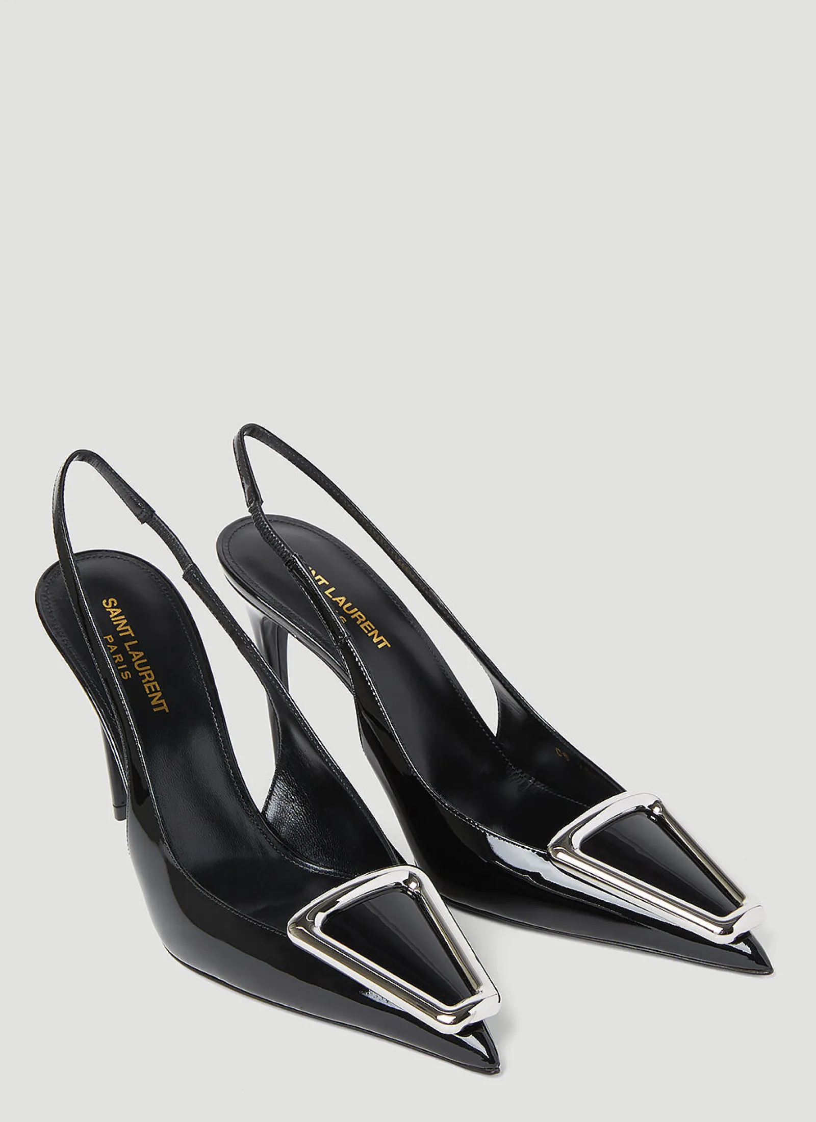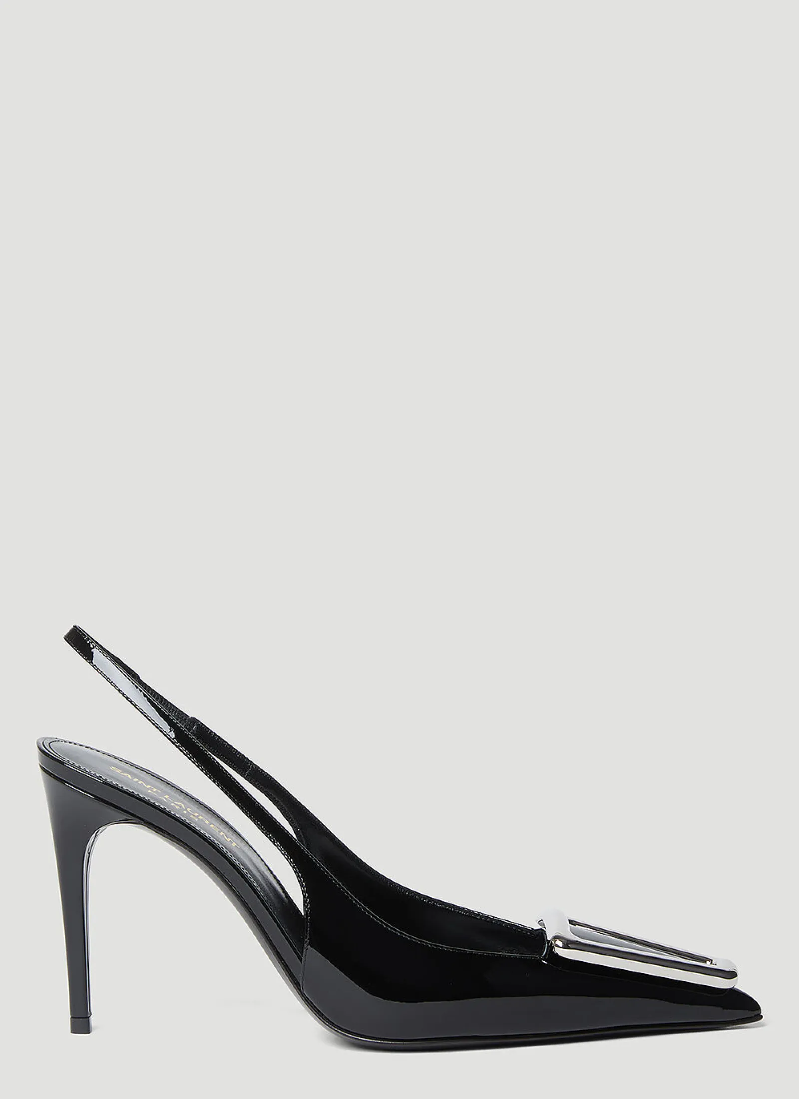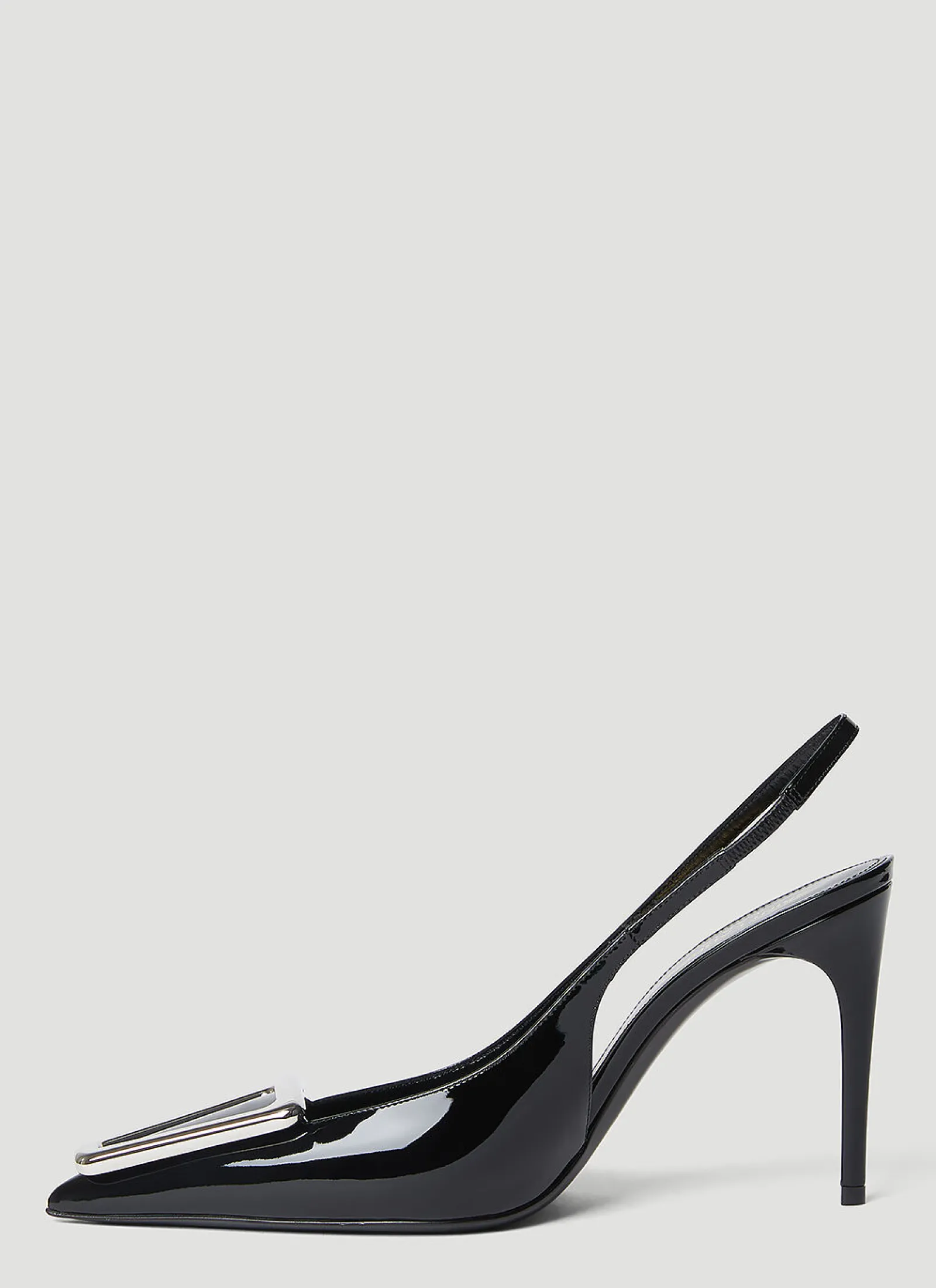 Avenue Slingback Pumps In Patent Leather With Silver-Tone Metal Hardware.