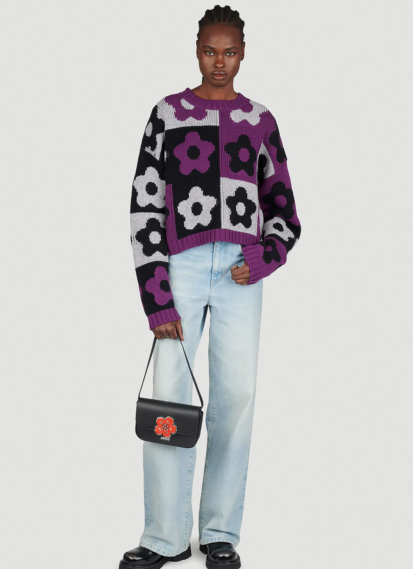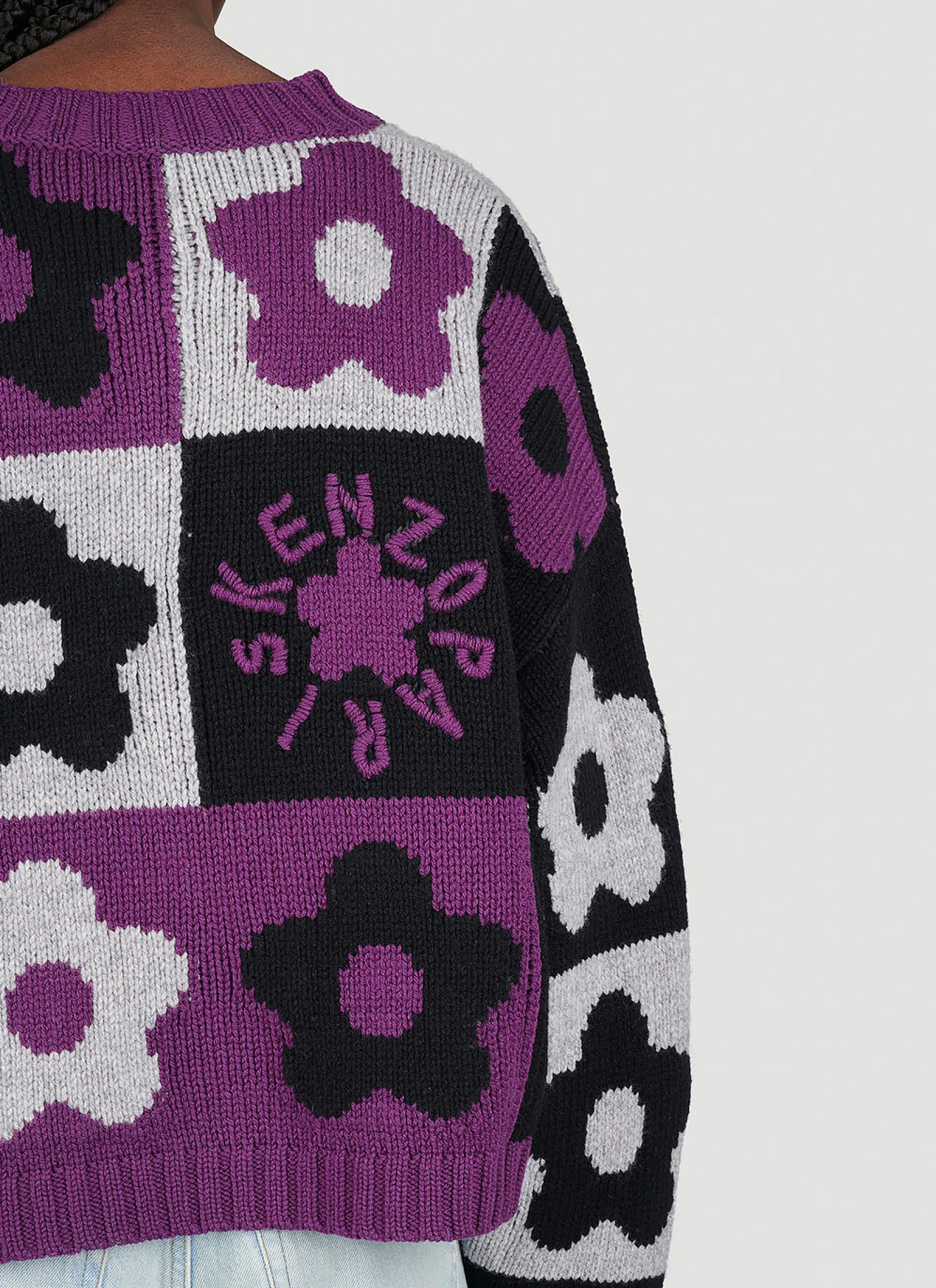 Boke Checkerboard Wool Knit Sweater With Flower Jacquard.