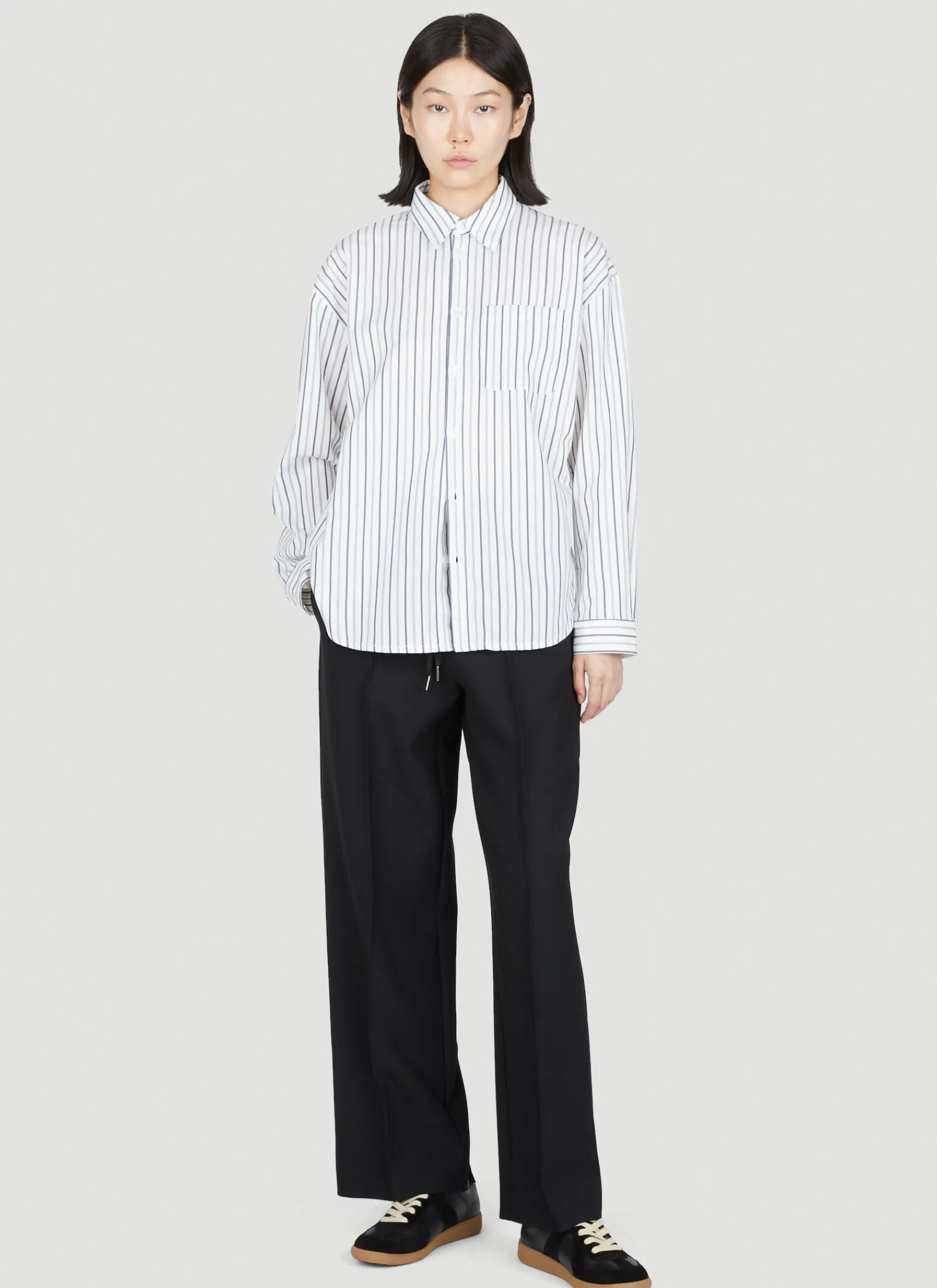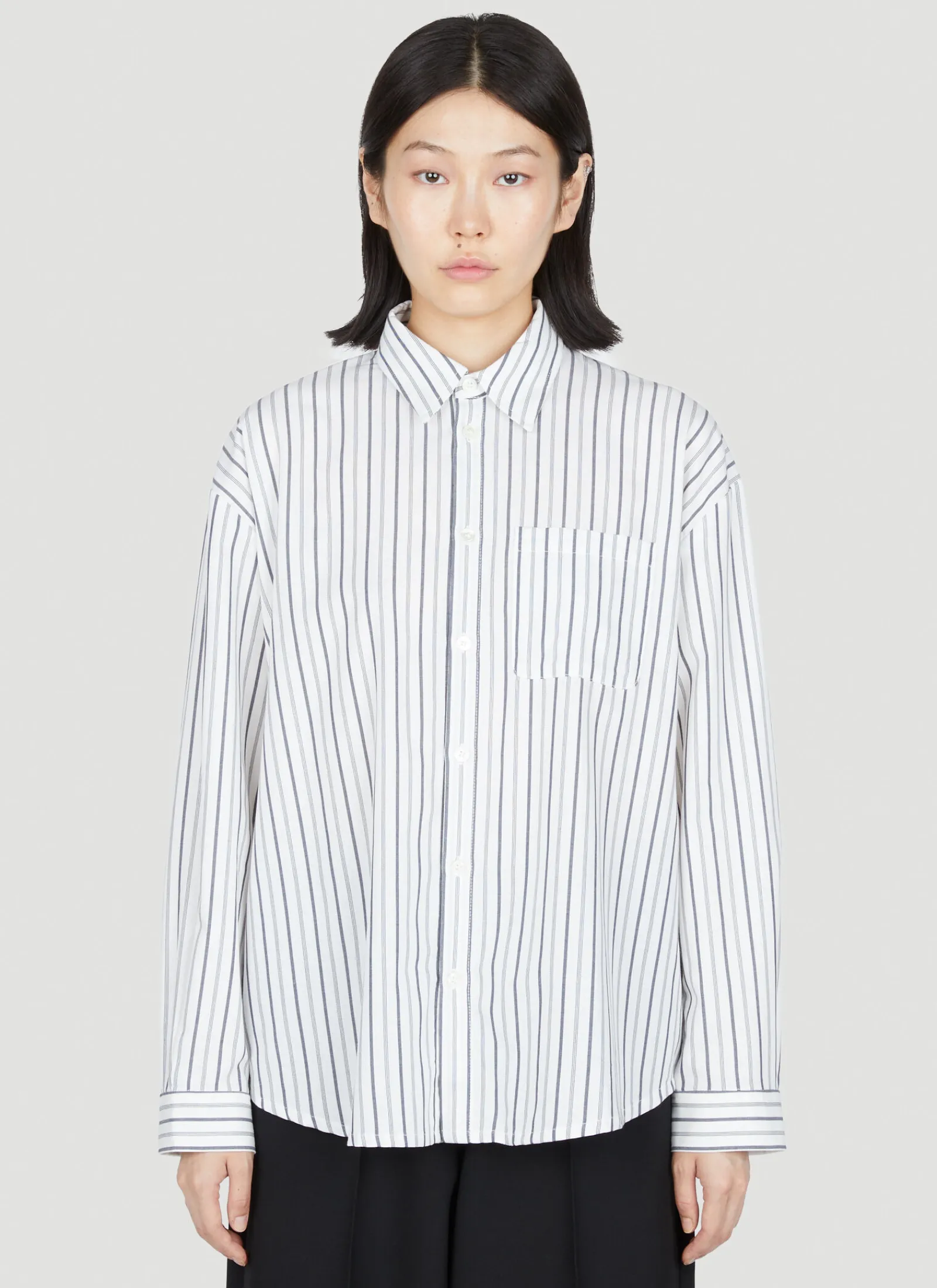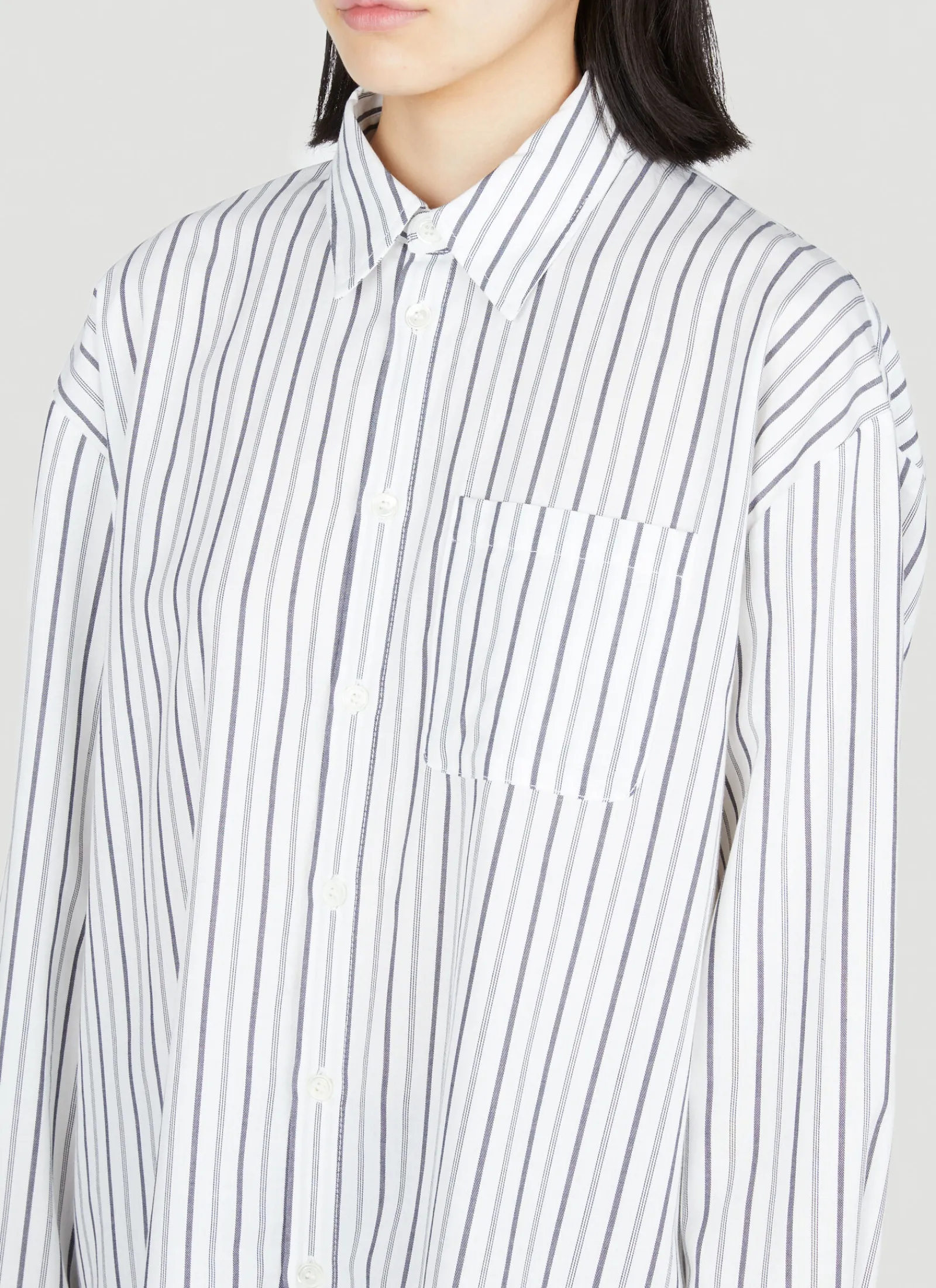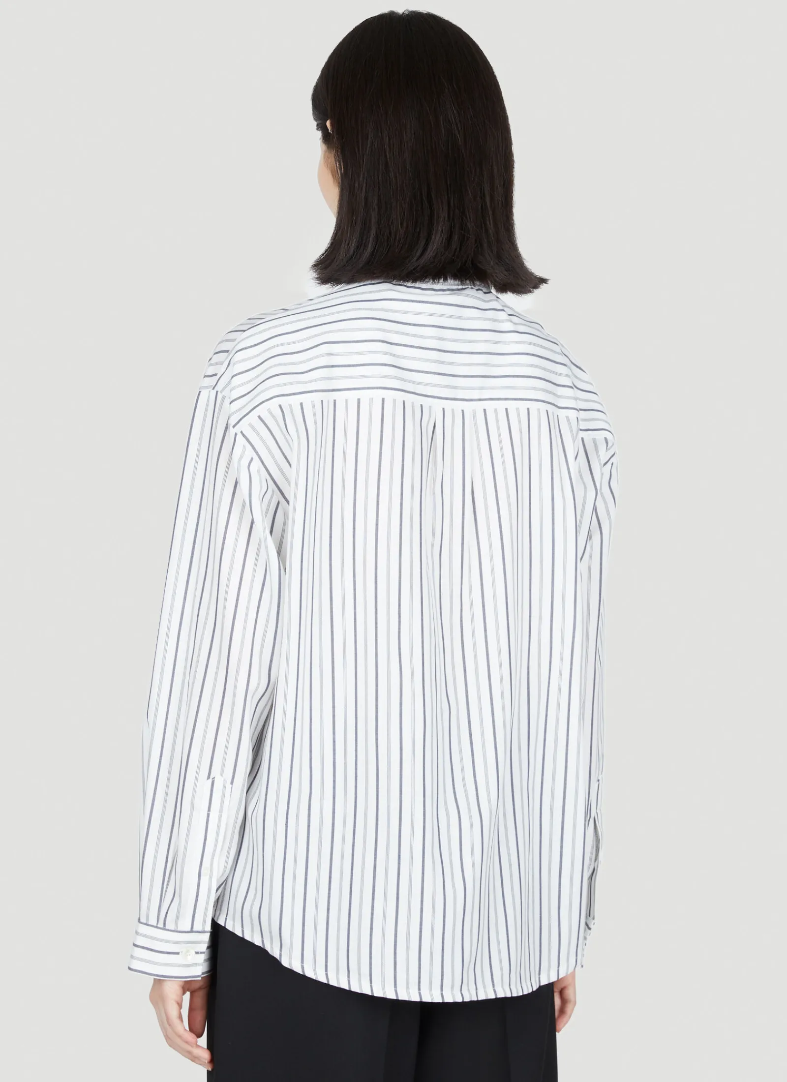 Cotton-And-Wool Blend Boyfriend Stripe Shirt.