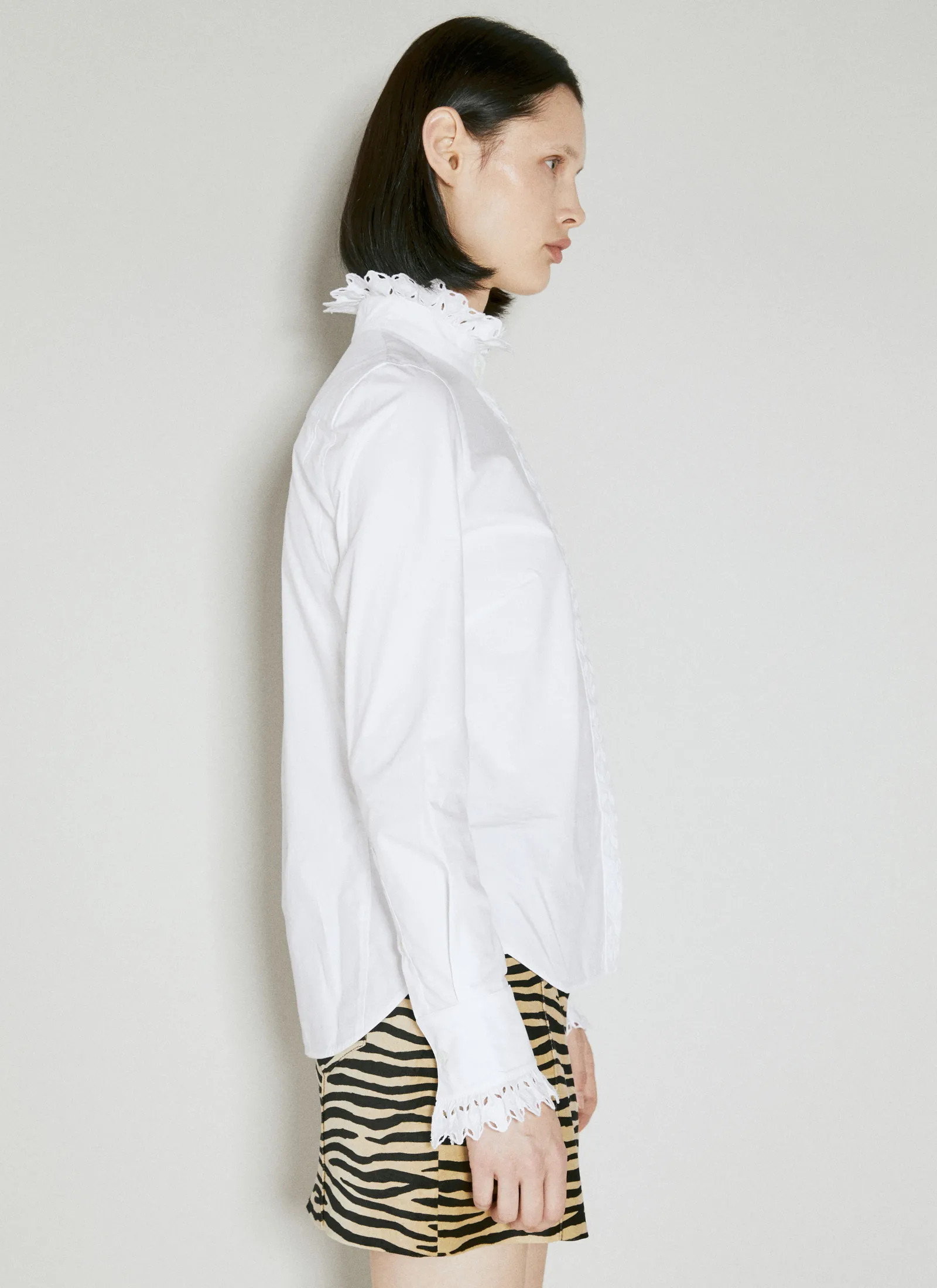 Cotton Poplin Shirt With Broderie Anglaise Trims.