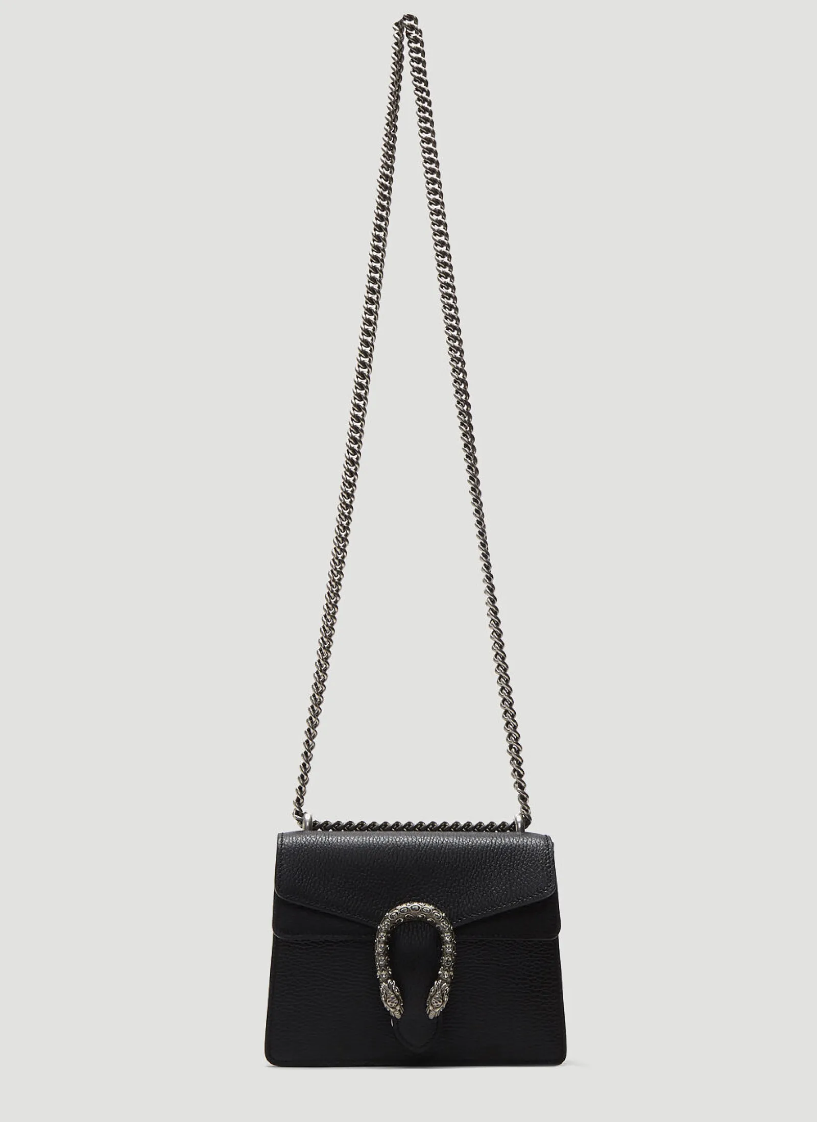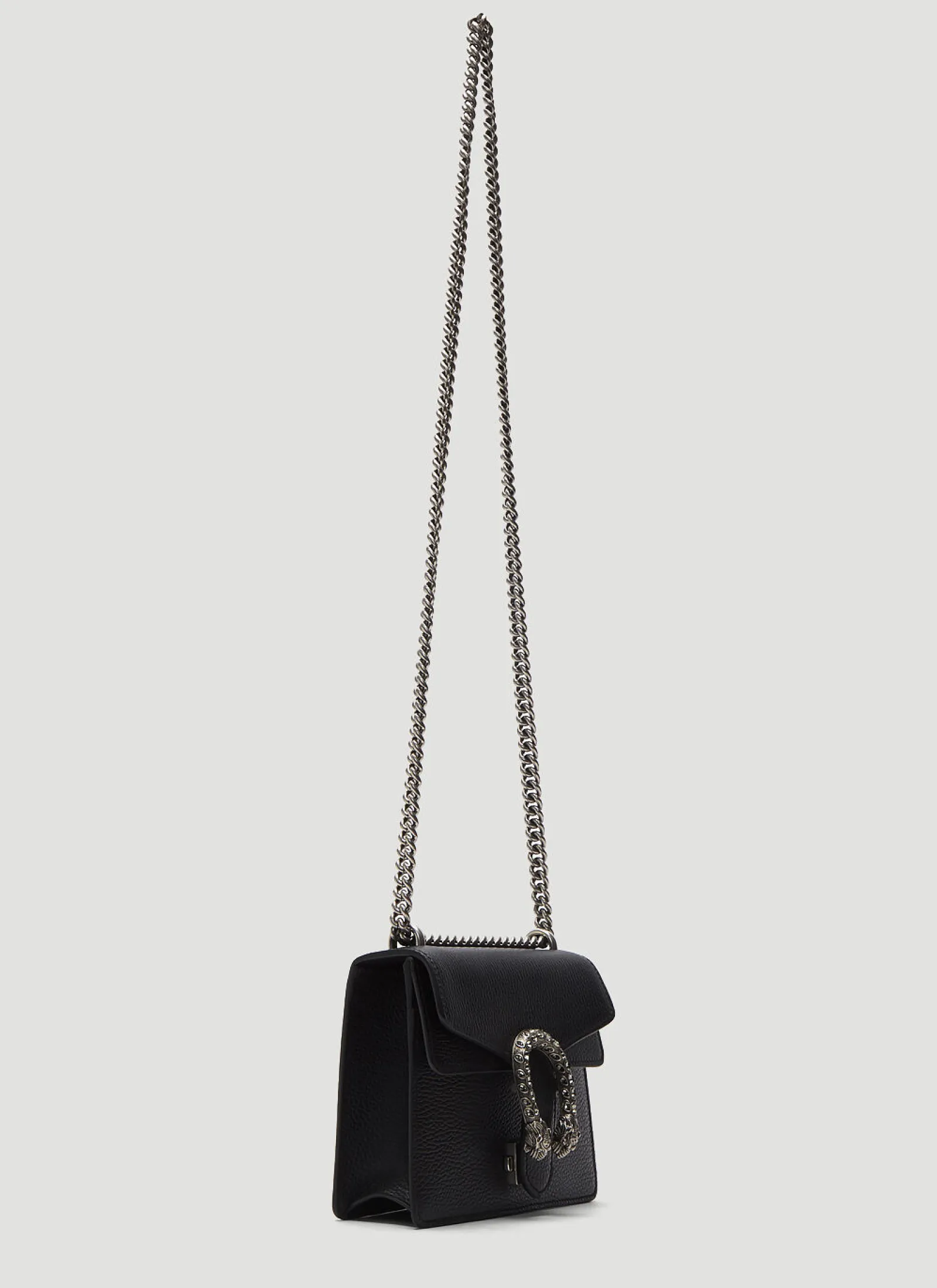 Gucci’S Signature Tropes – Playful Detailing And Striking Elements – Are Evident In This Season’S Accessories. The Dionysus Mini Swarovski Tiger Head Crossbody Bag Is Crafted From Leather In A Grained Finish, Featuring A Fold-Over Front Flap, Swarovski Crystal-Embellished Tiger Head Clasps And Sliding Chain Shoulder Strap.