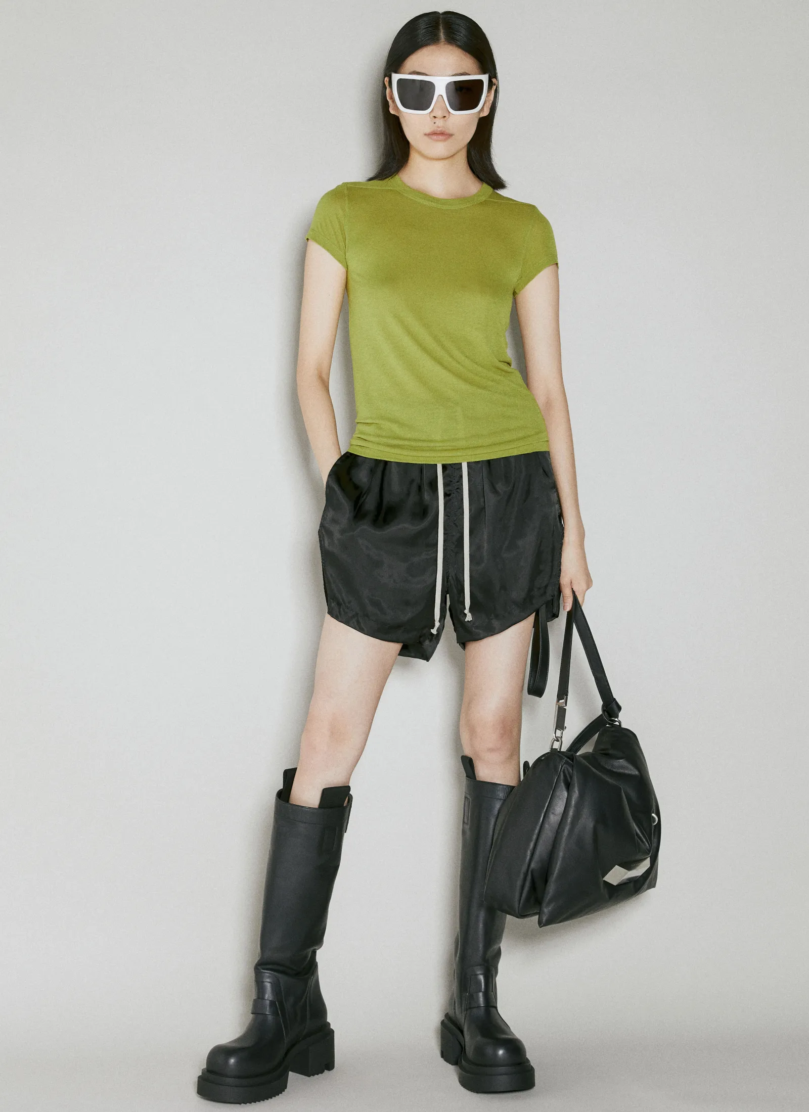 Drawstring Satin Shorts With Dropped Hem At Rear.