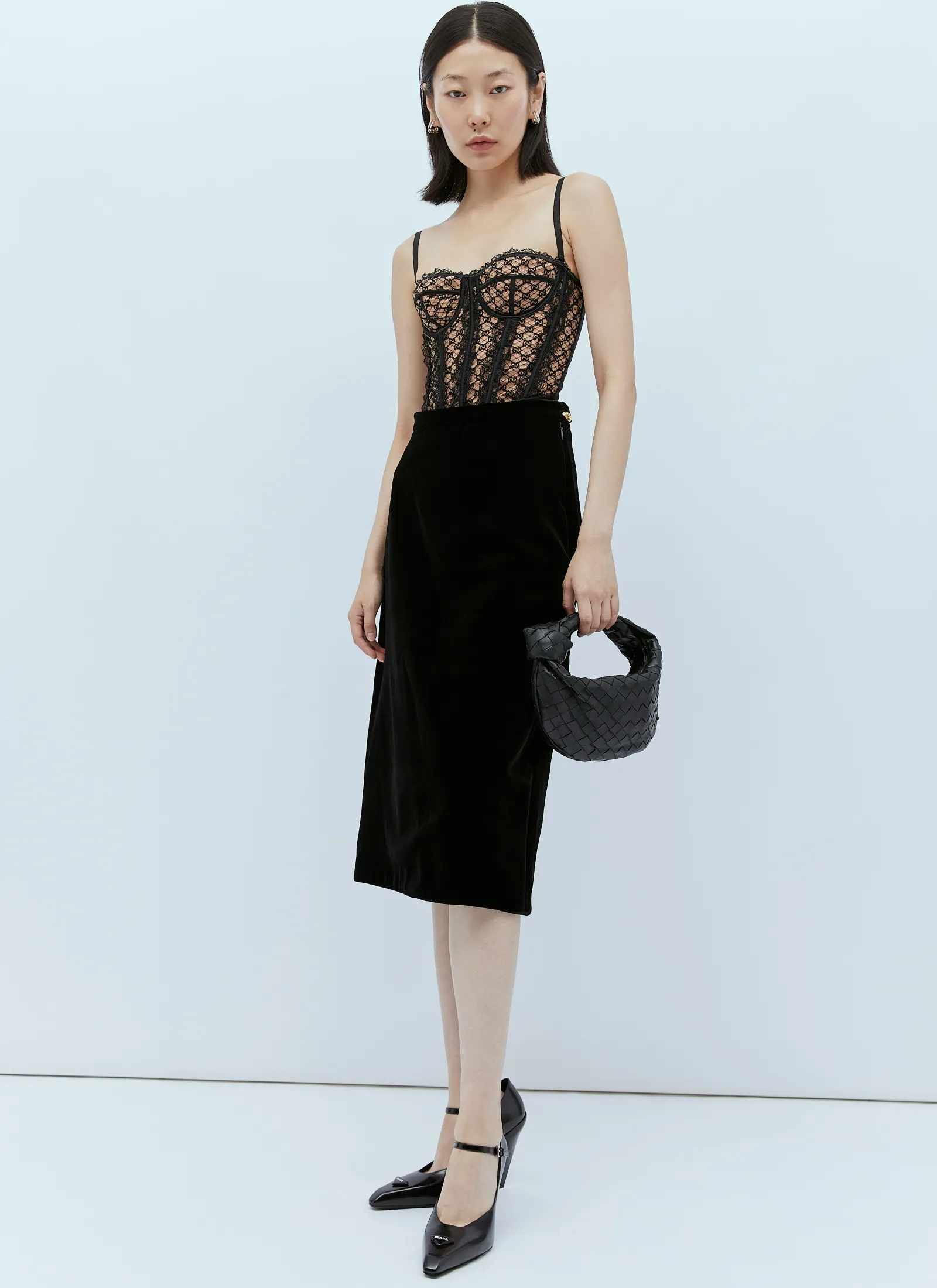 Gg Lace Lingerie Top With All-Over Logo Embroidery.