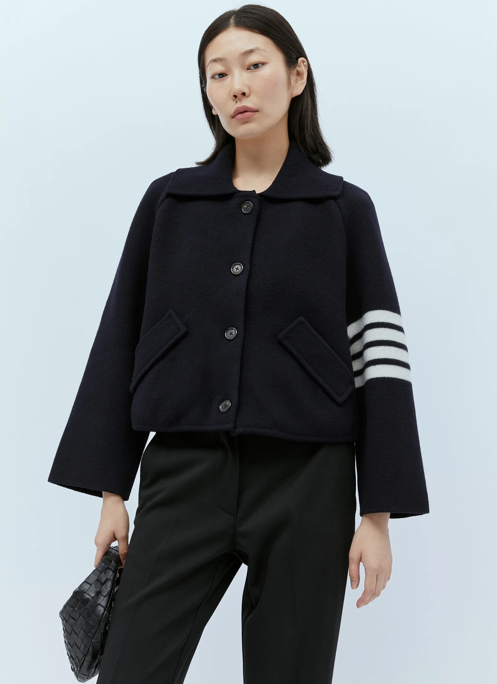 Knit Four Bar Cropped Coat In Wool.