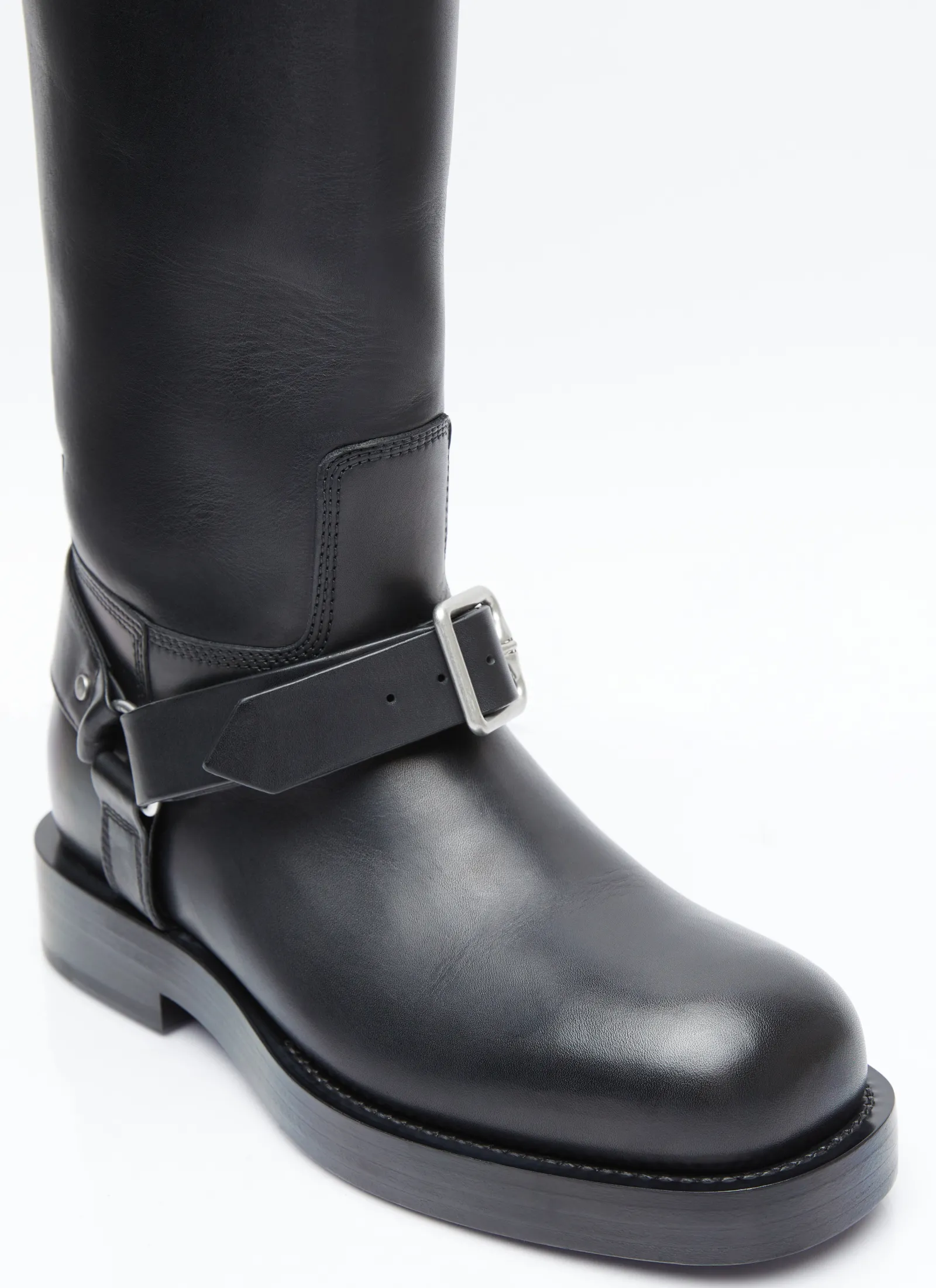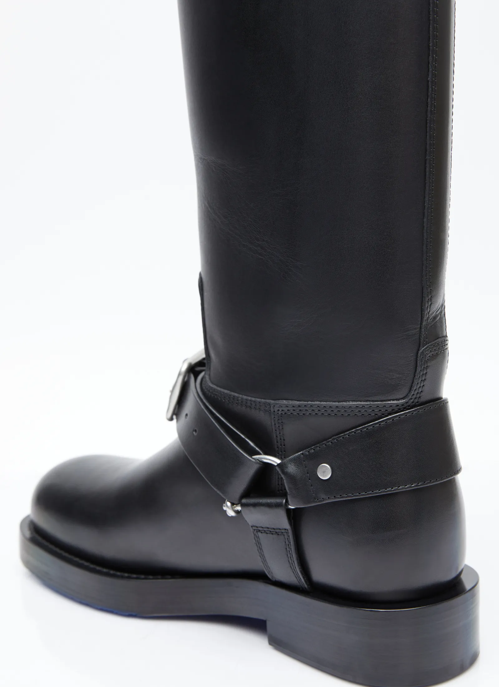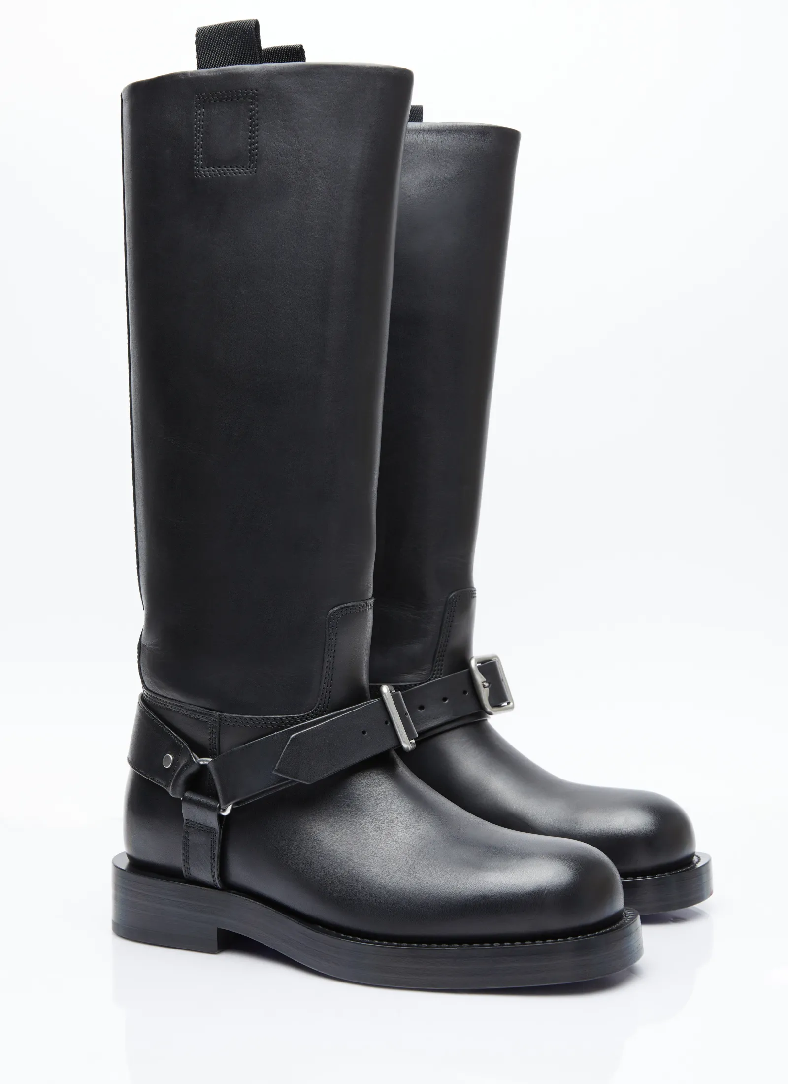 Leather Saddle Tall Boots With Buckle Fastening Strap.