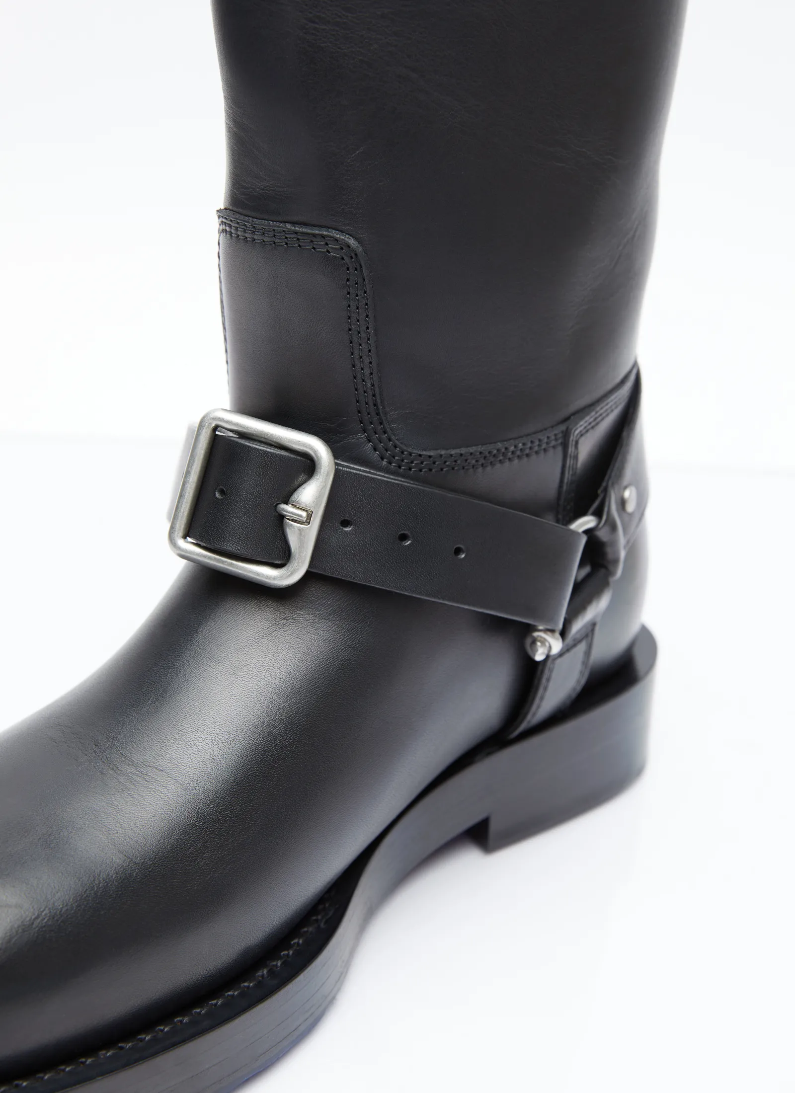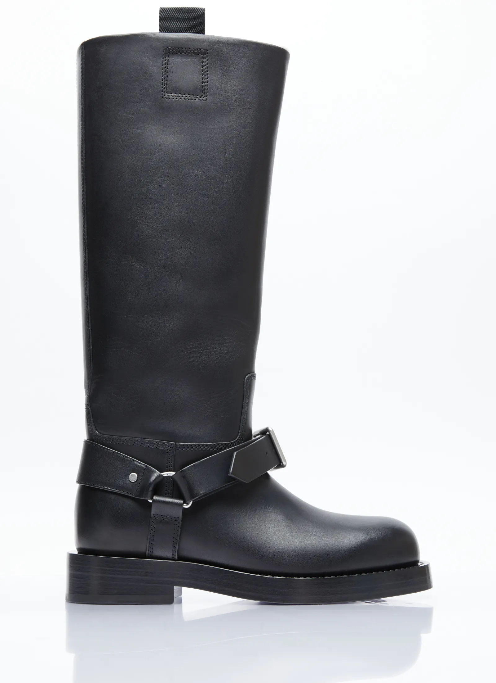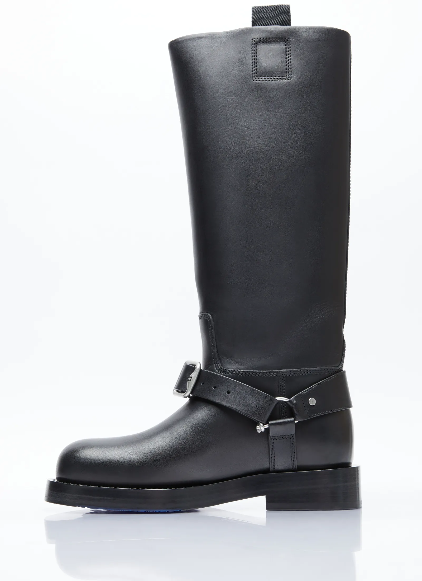 Leather Saddle Tall Boots With Buckle Fastening Strap.
