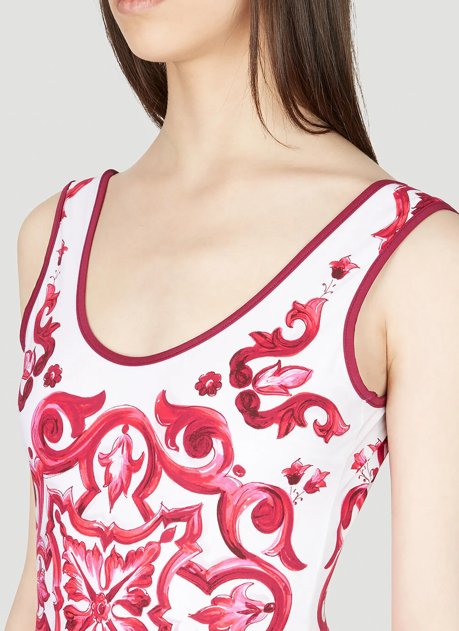 Majolica Stretch-Jersey One-Piece Swimsuit With Scoop Neckline And Graphic Motif.