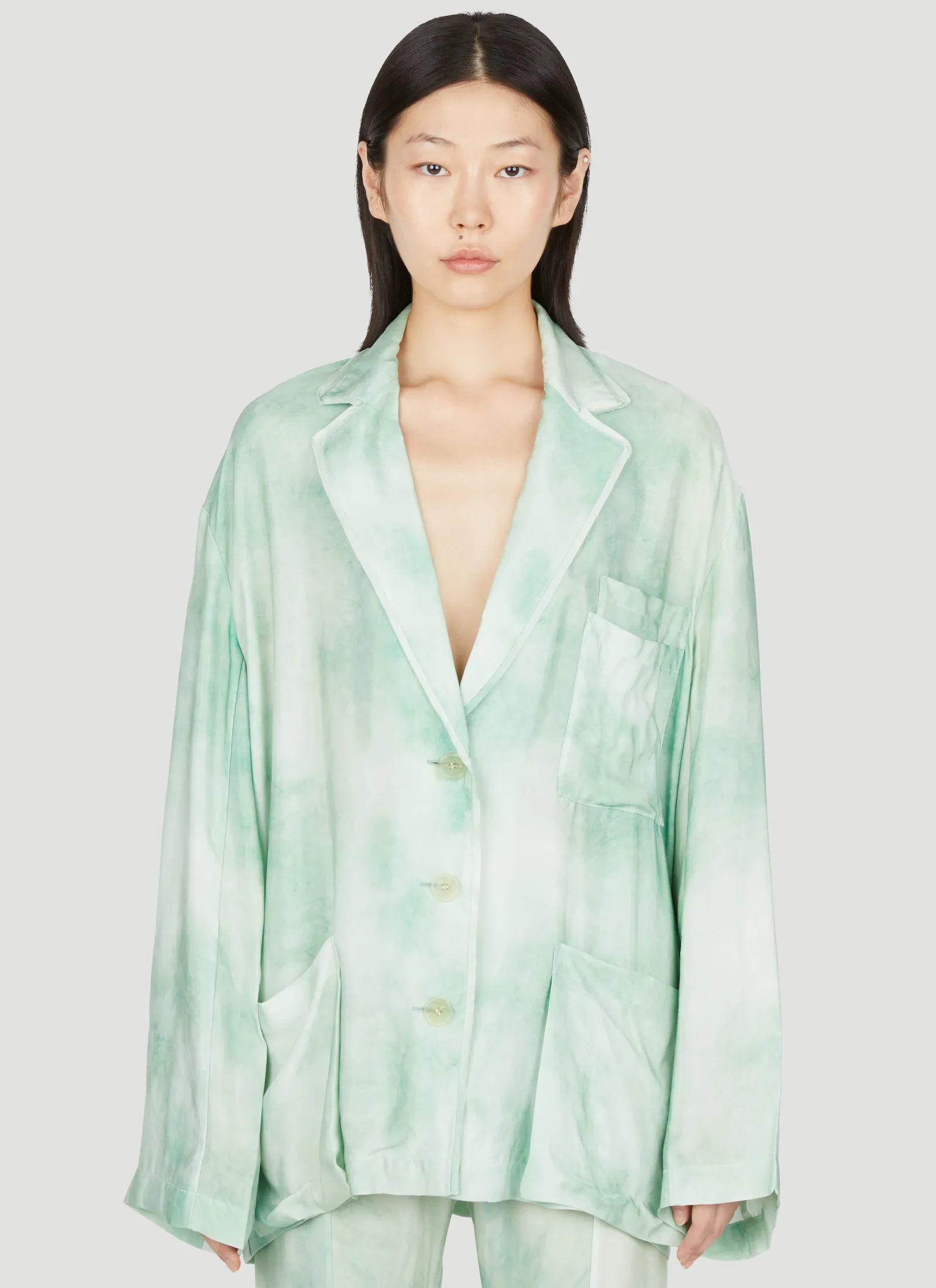 Marbel Print Oversized Pyjama Shirt In Plain Weave.