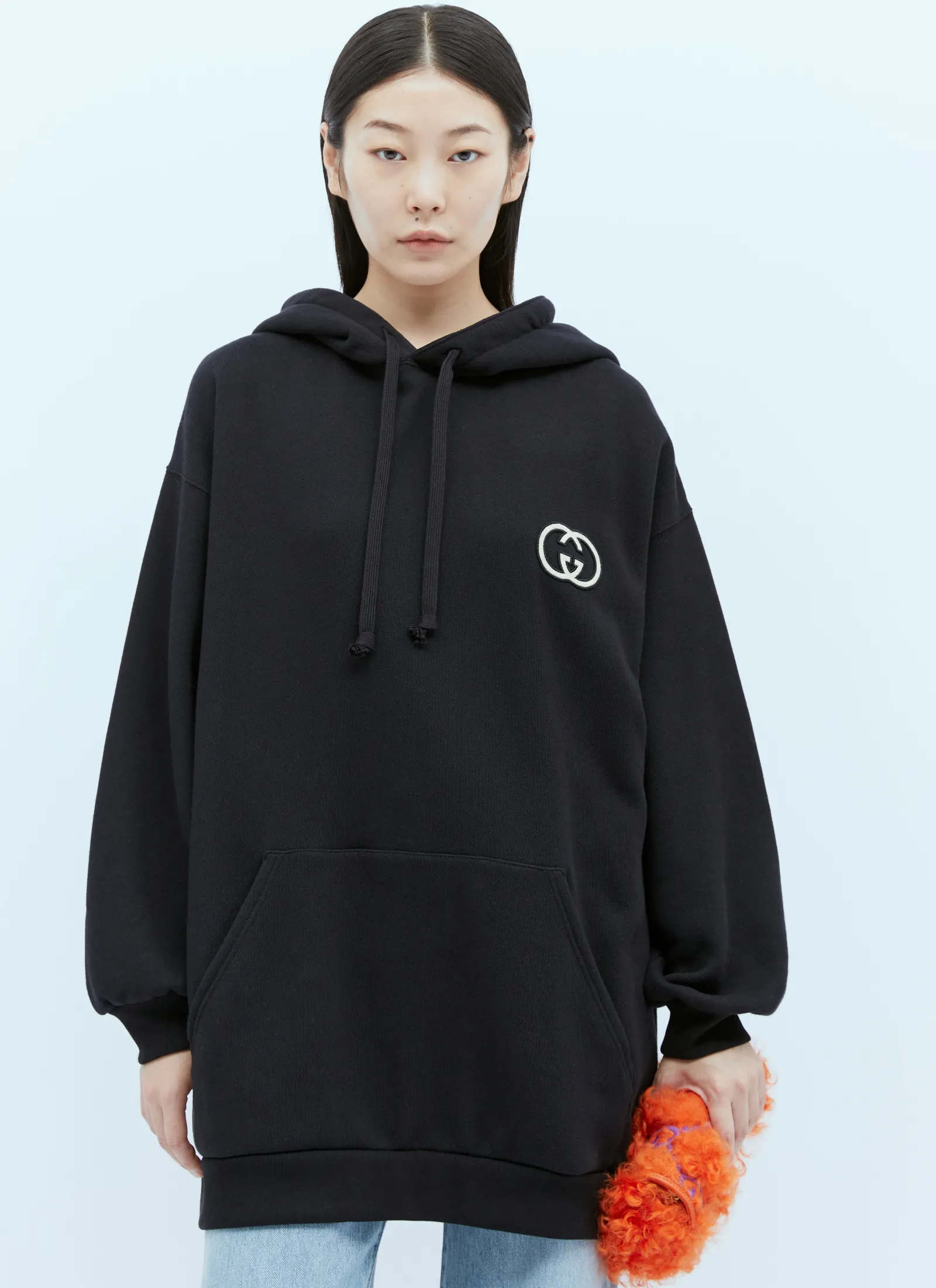 Maxi Hooded Sweatshirt With Interlocking Gg Logo Patch.