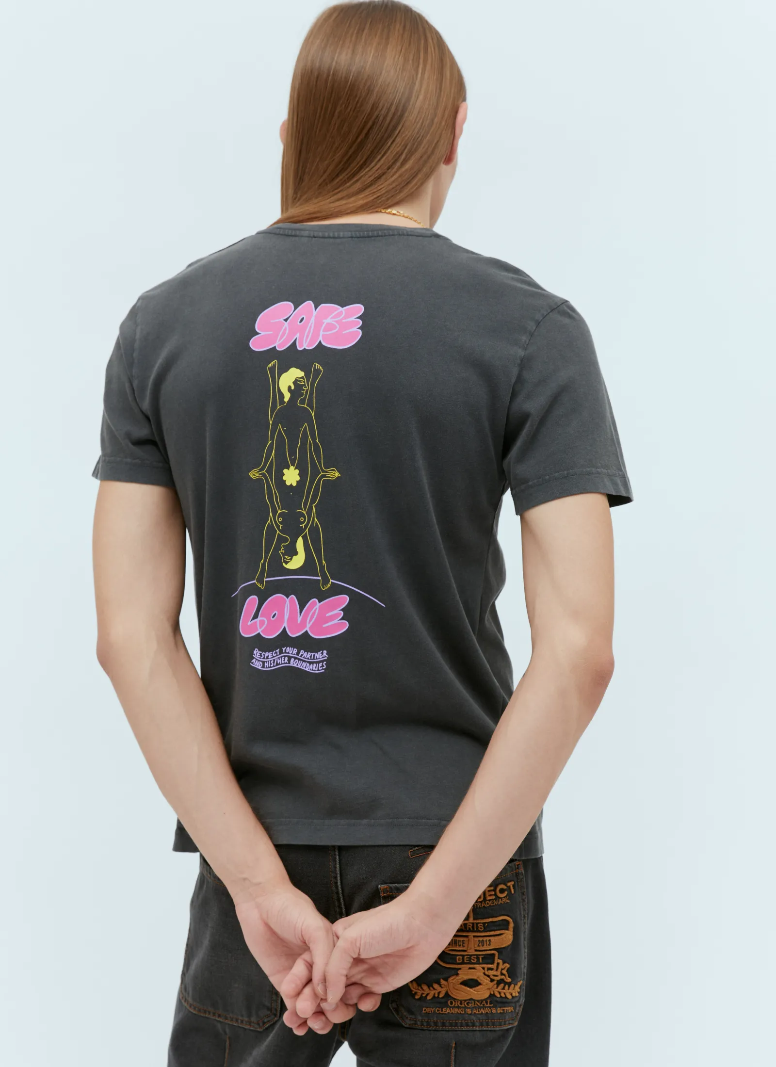 Safe Love T-Shirt In Cotton Jersey With Chest Graphic Embroidery.