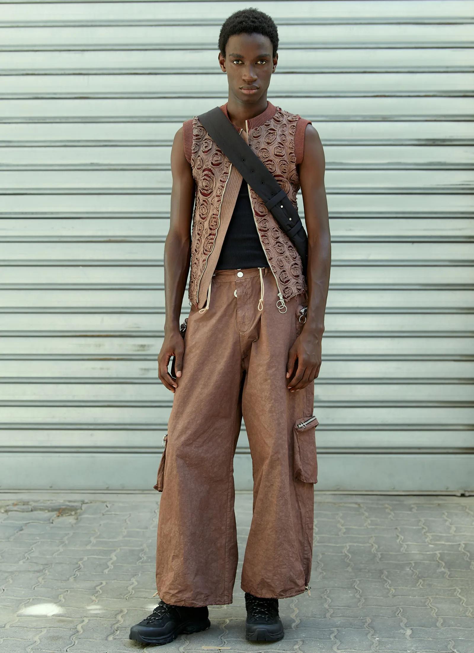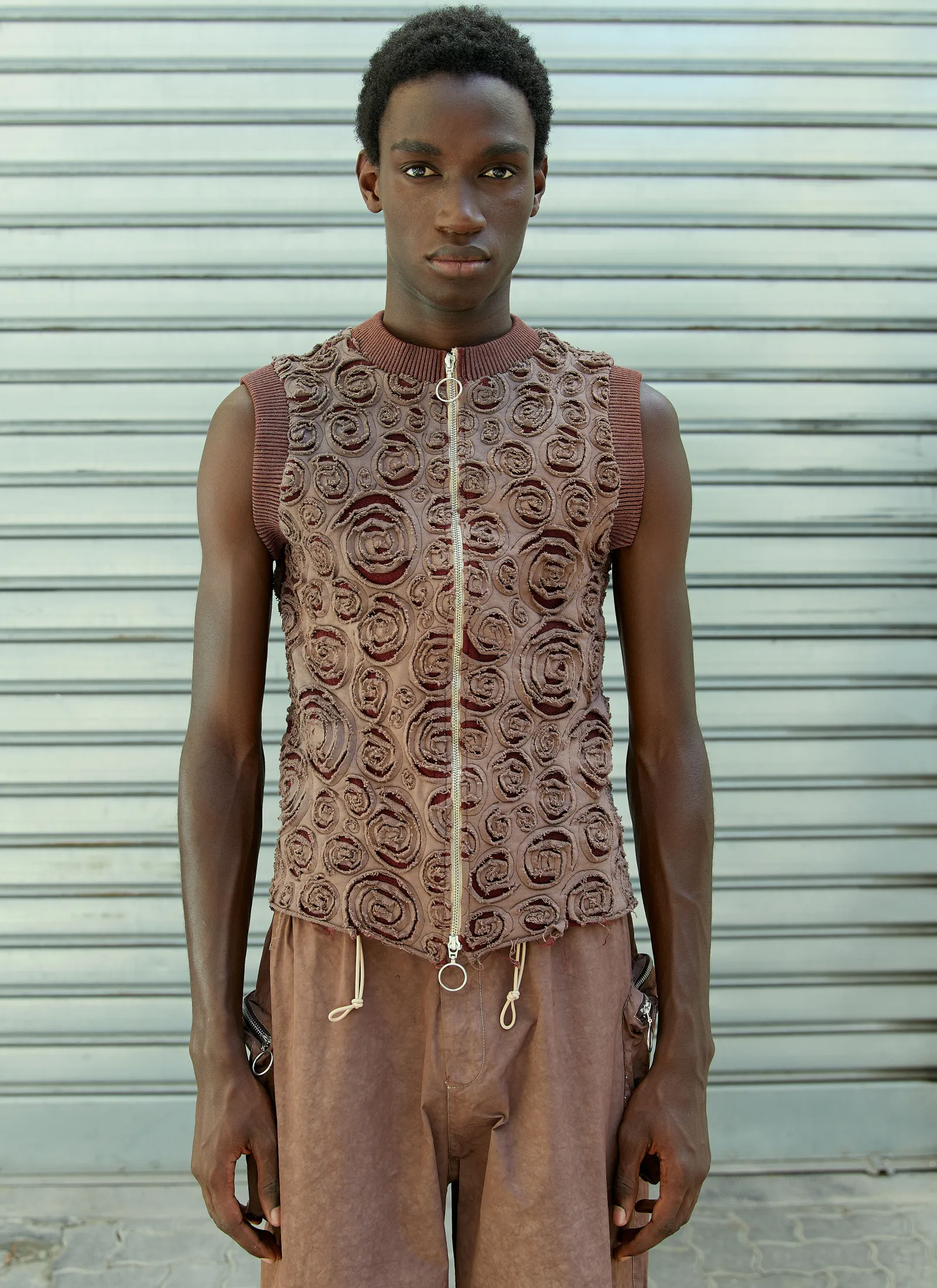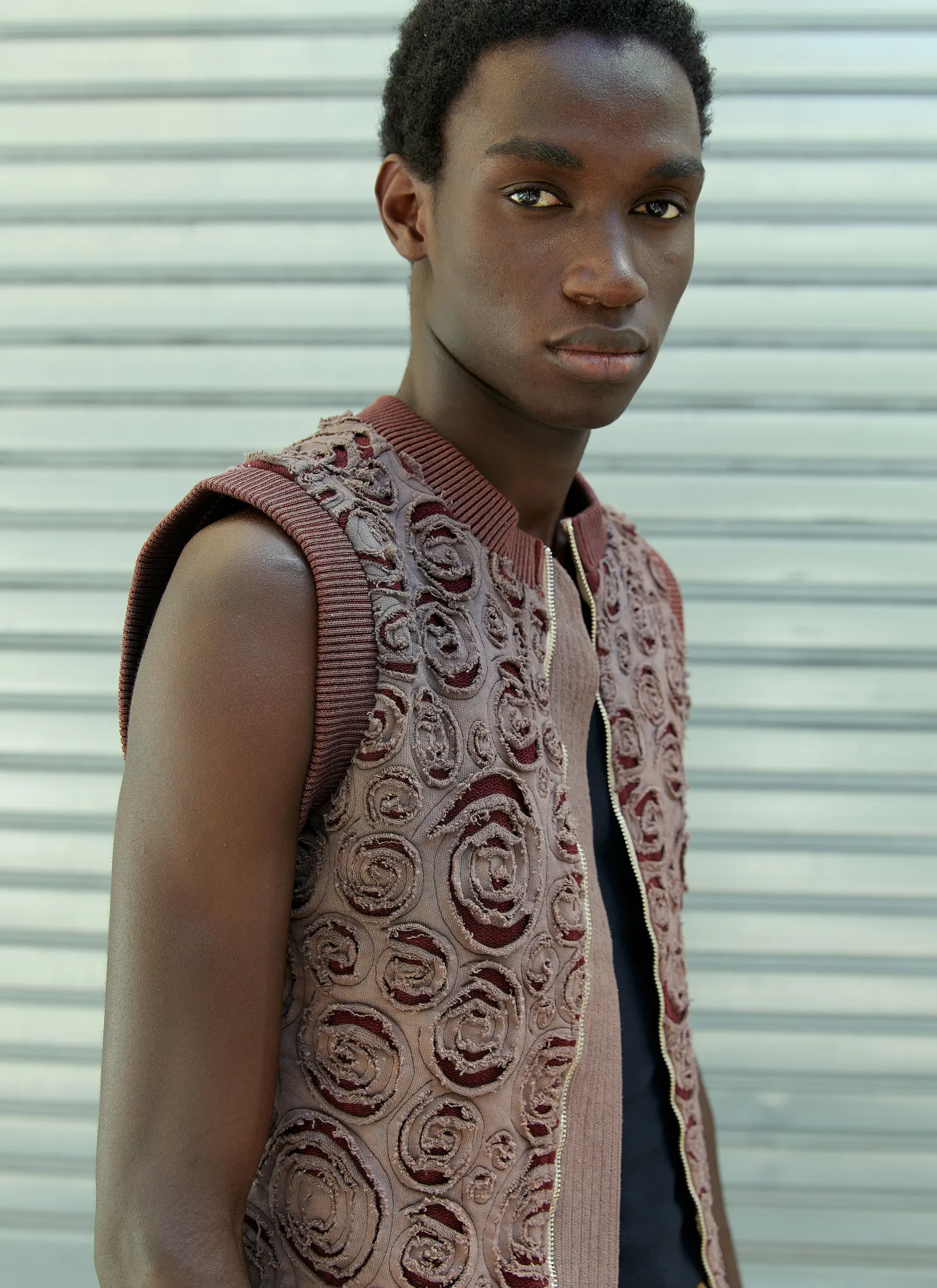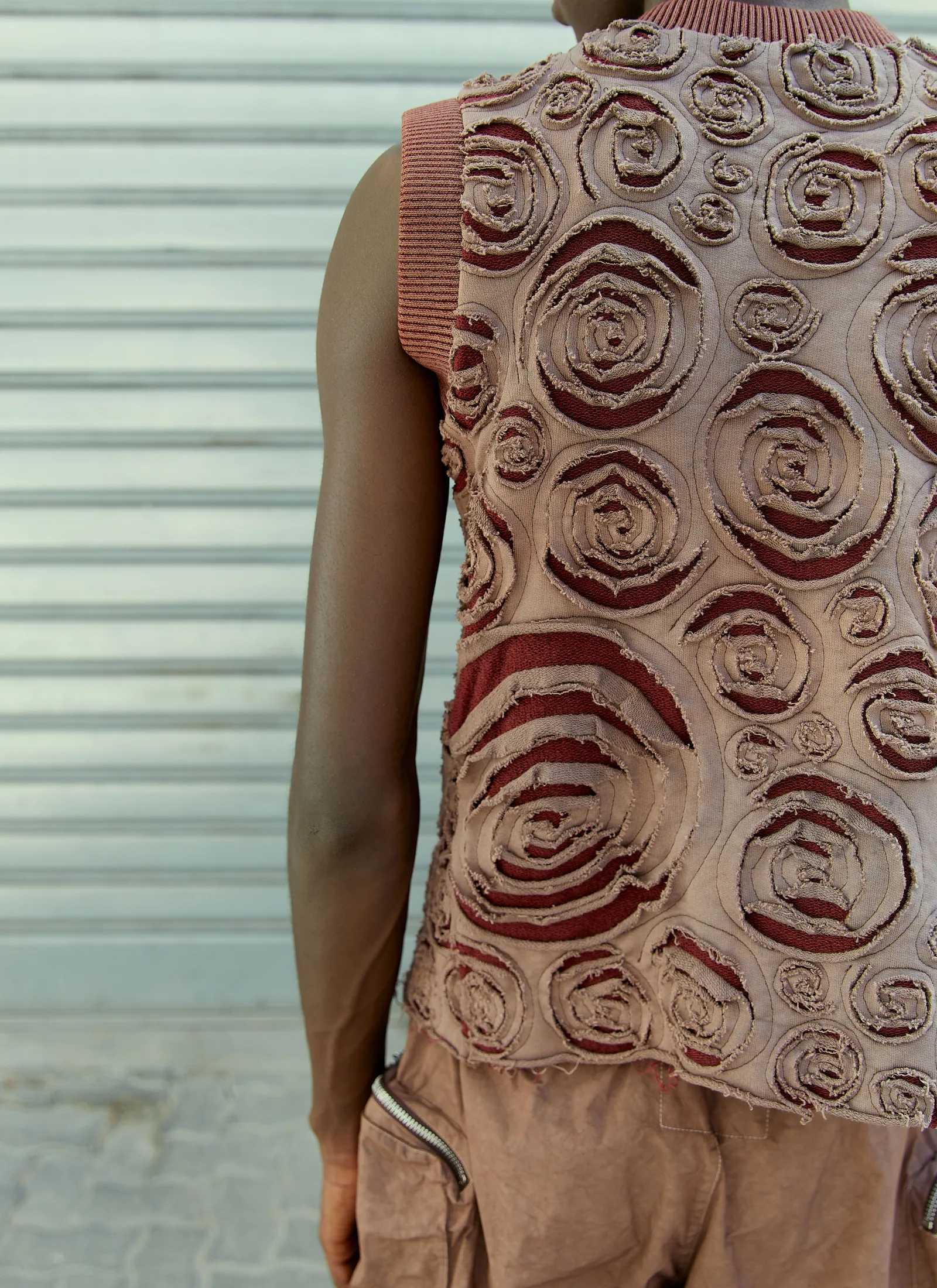 Spiral Applique Vest In Wool Blend With Cotton Jersey Overlay