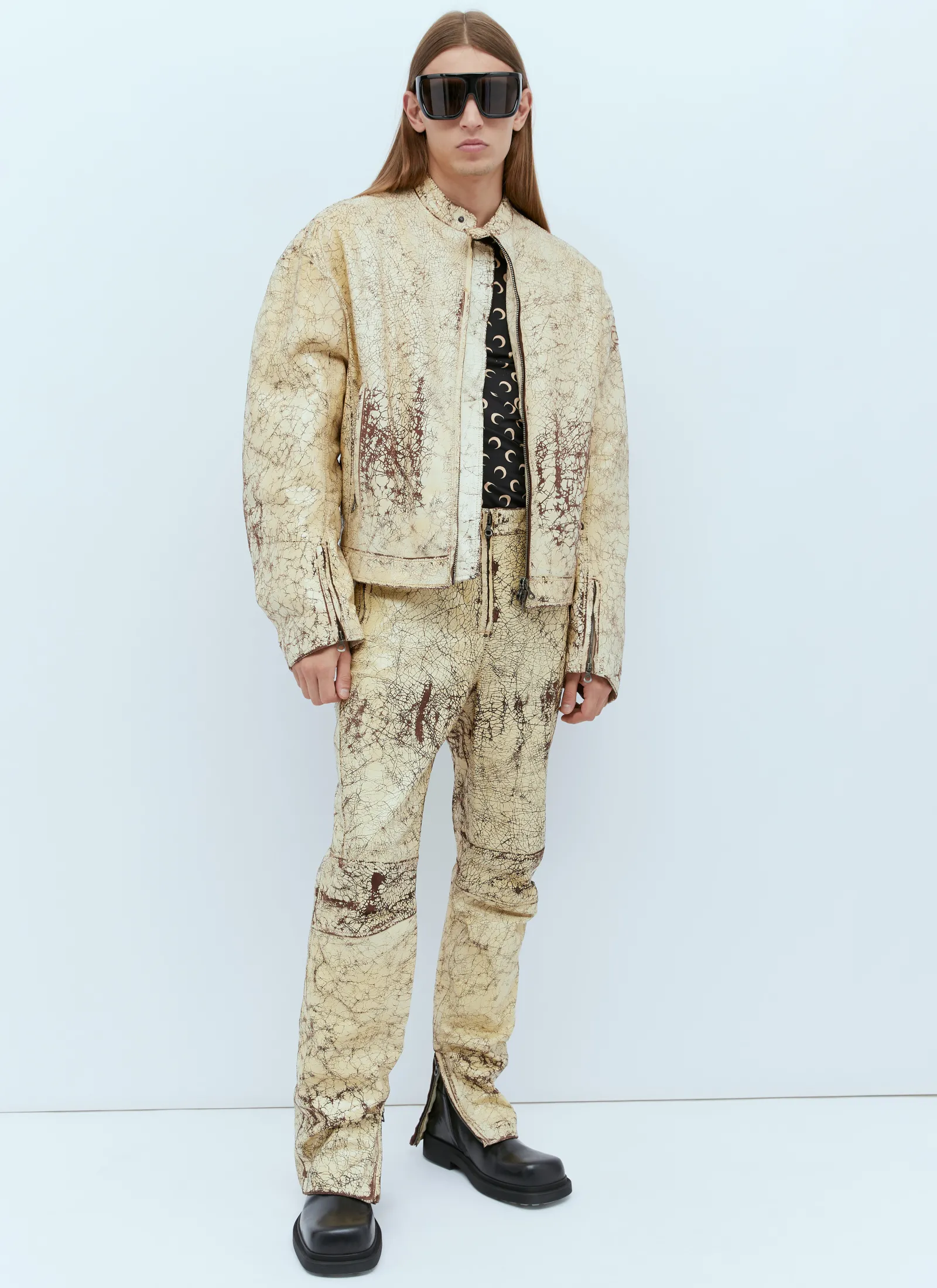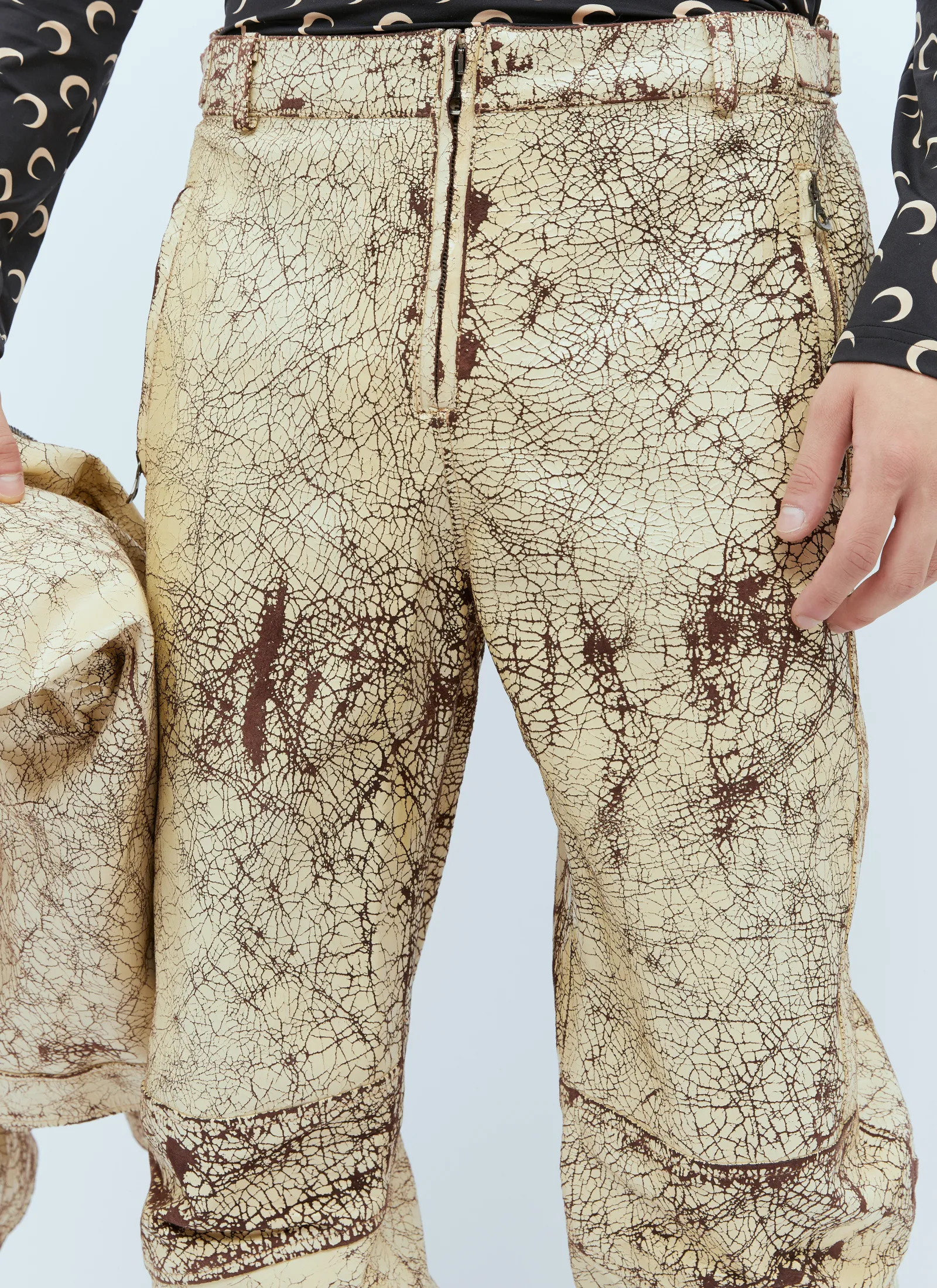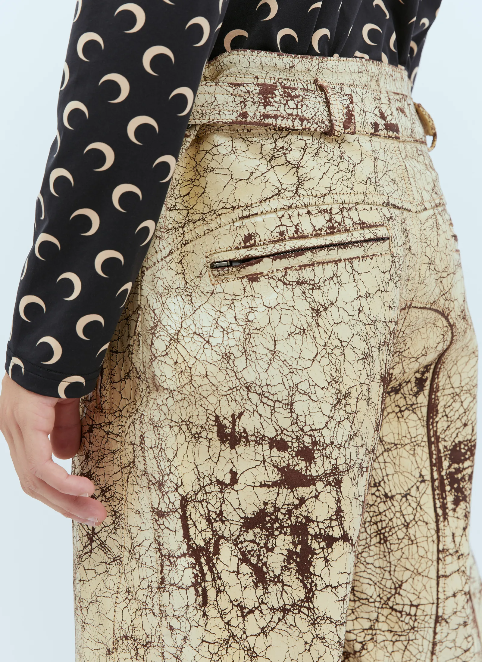 P-Alan Coated Leather Pants In Crackled Finish.