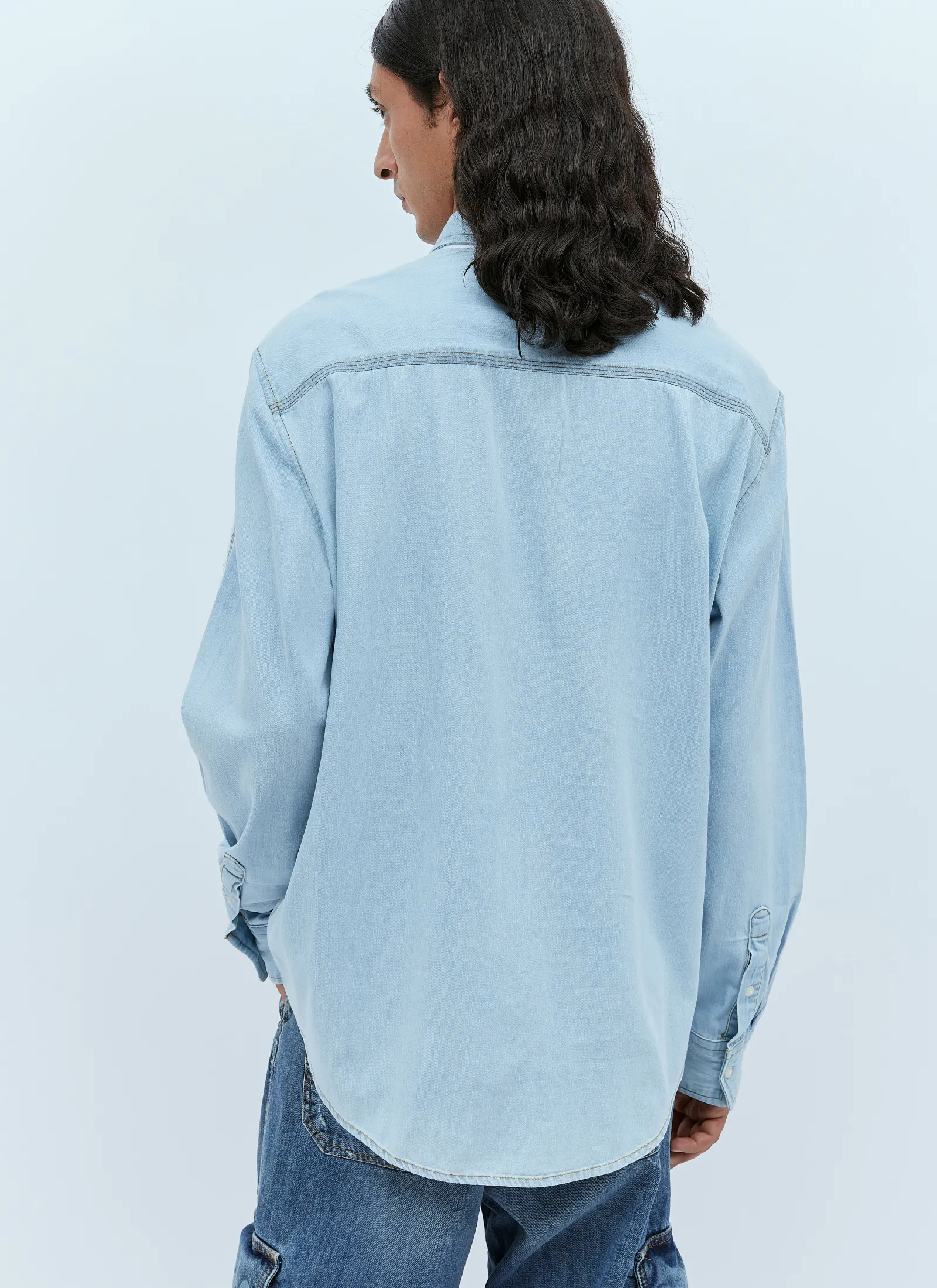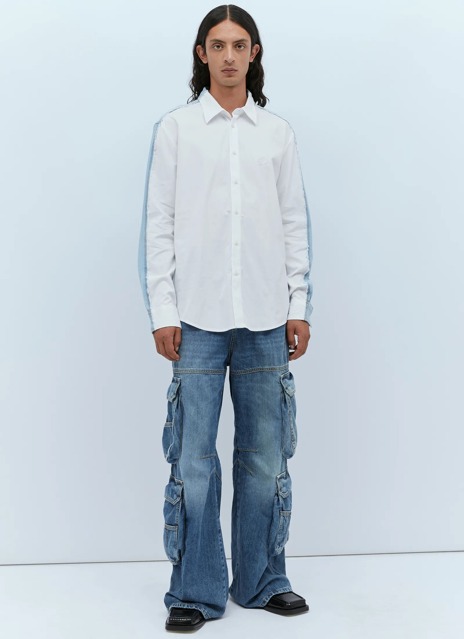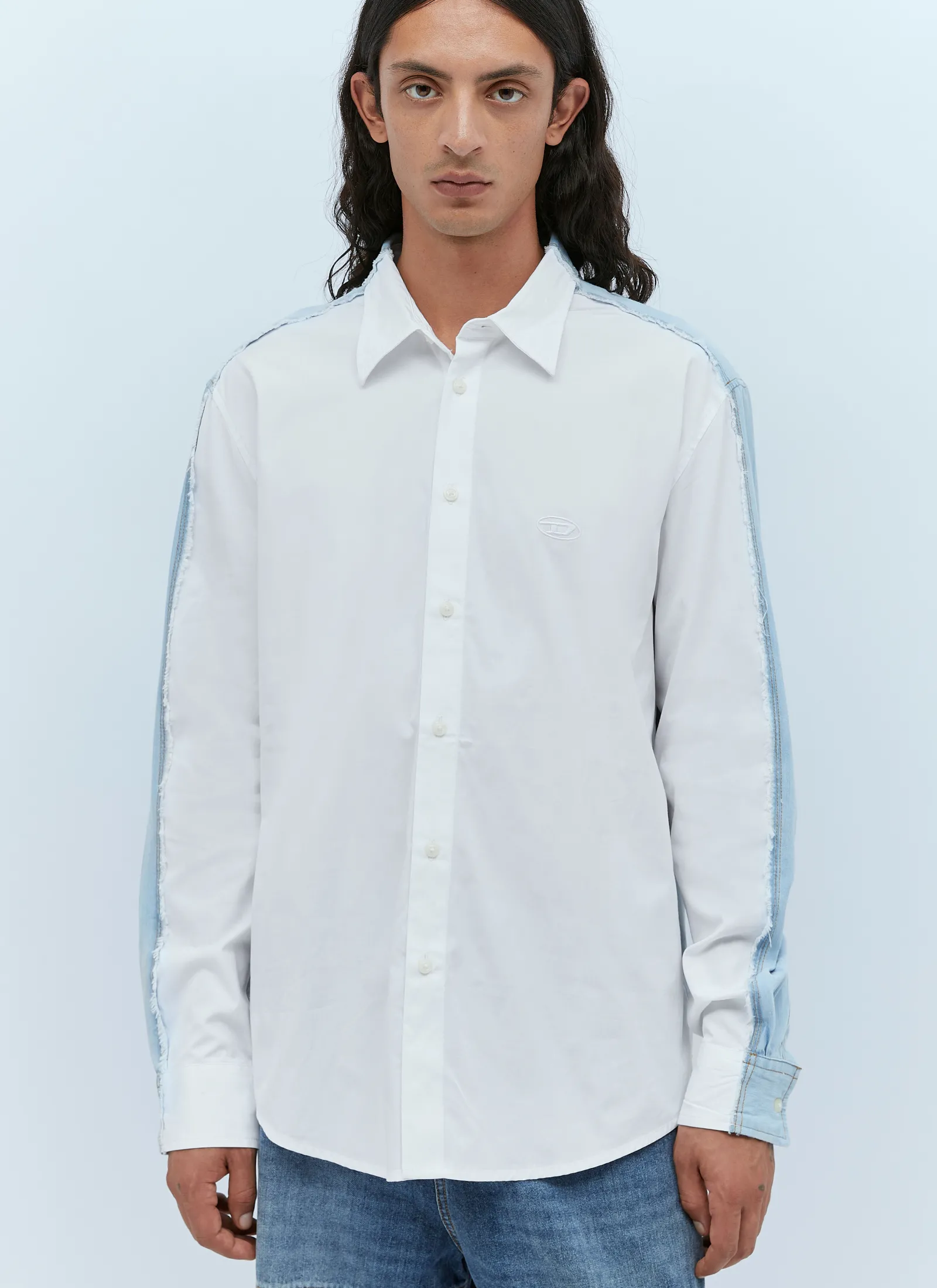 S-Warh Shirt In Cotton With Rear Denim Panel.
