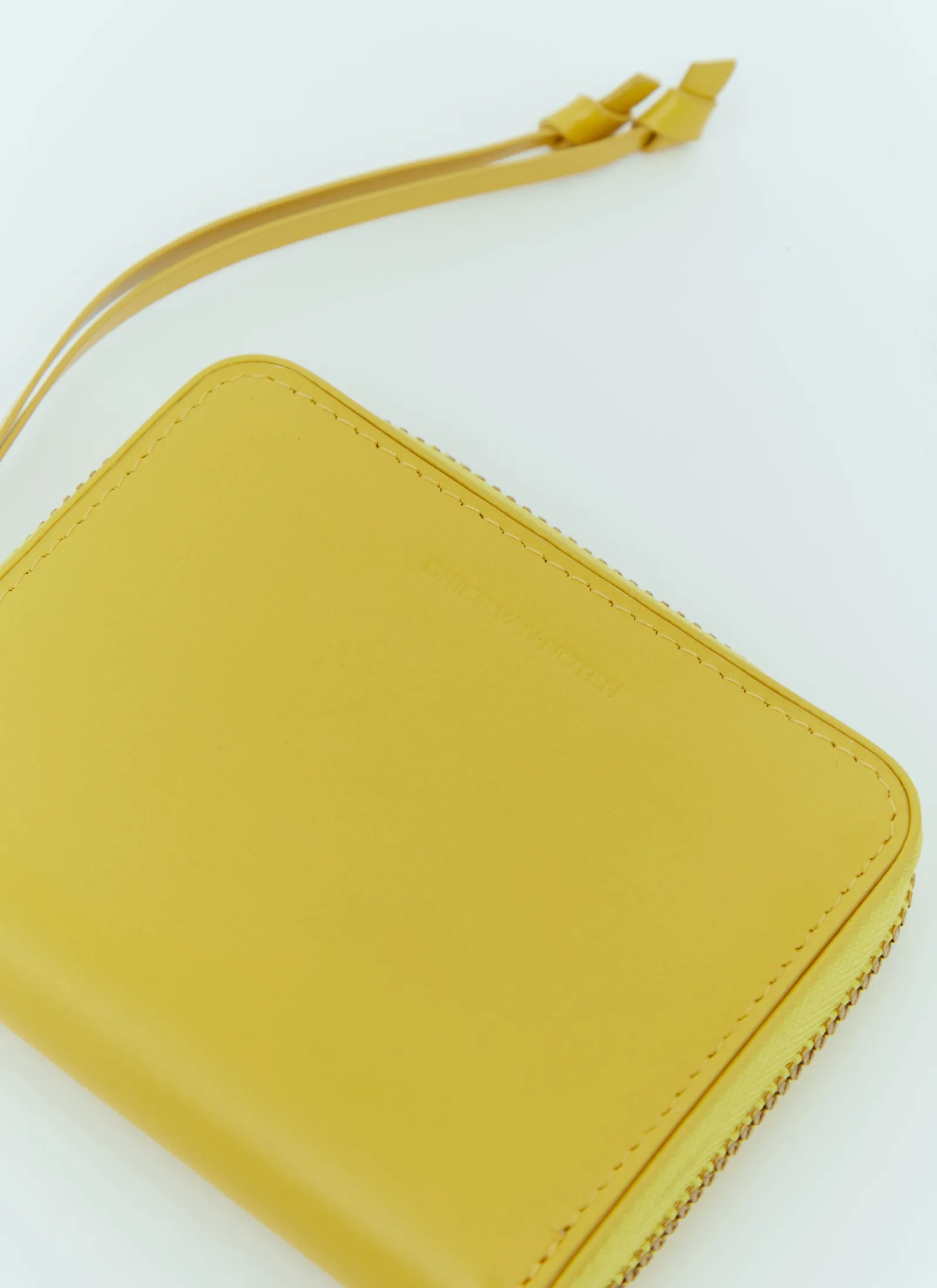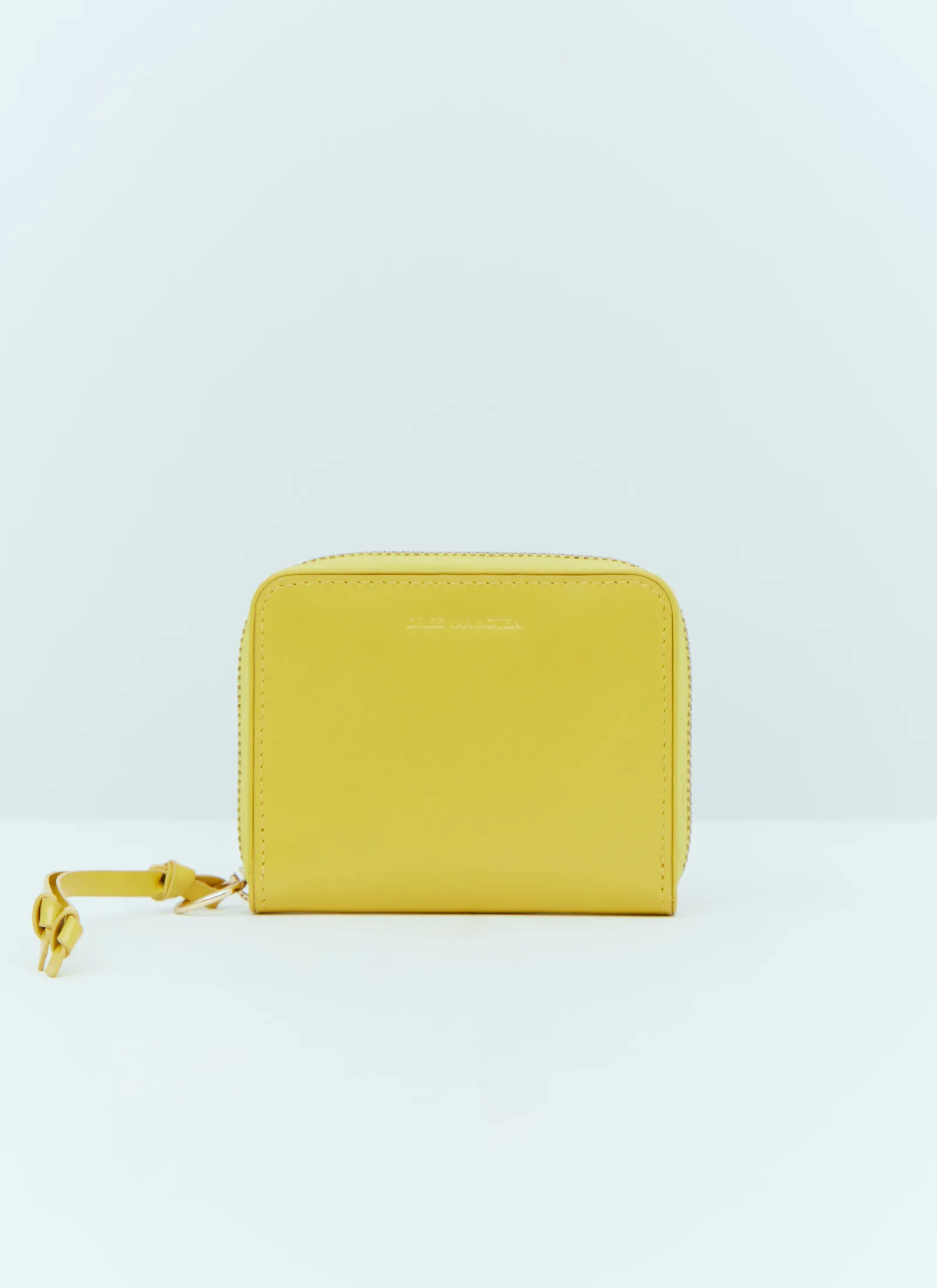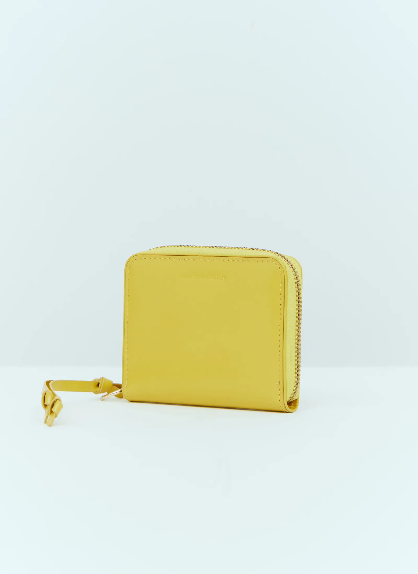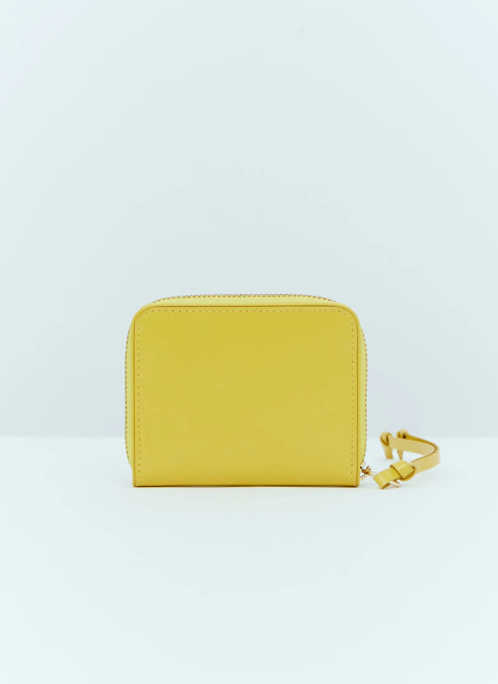 Zip Around Leather Wallet With Knotted Pull.