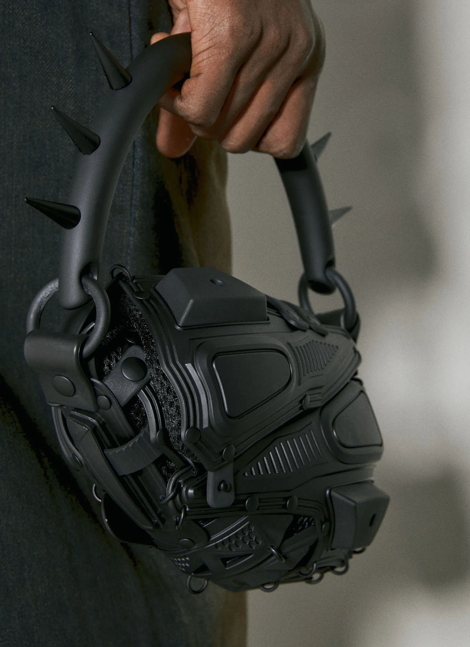 Spike Handle Handbag With Exo-Skeletal Hardware.