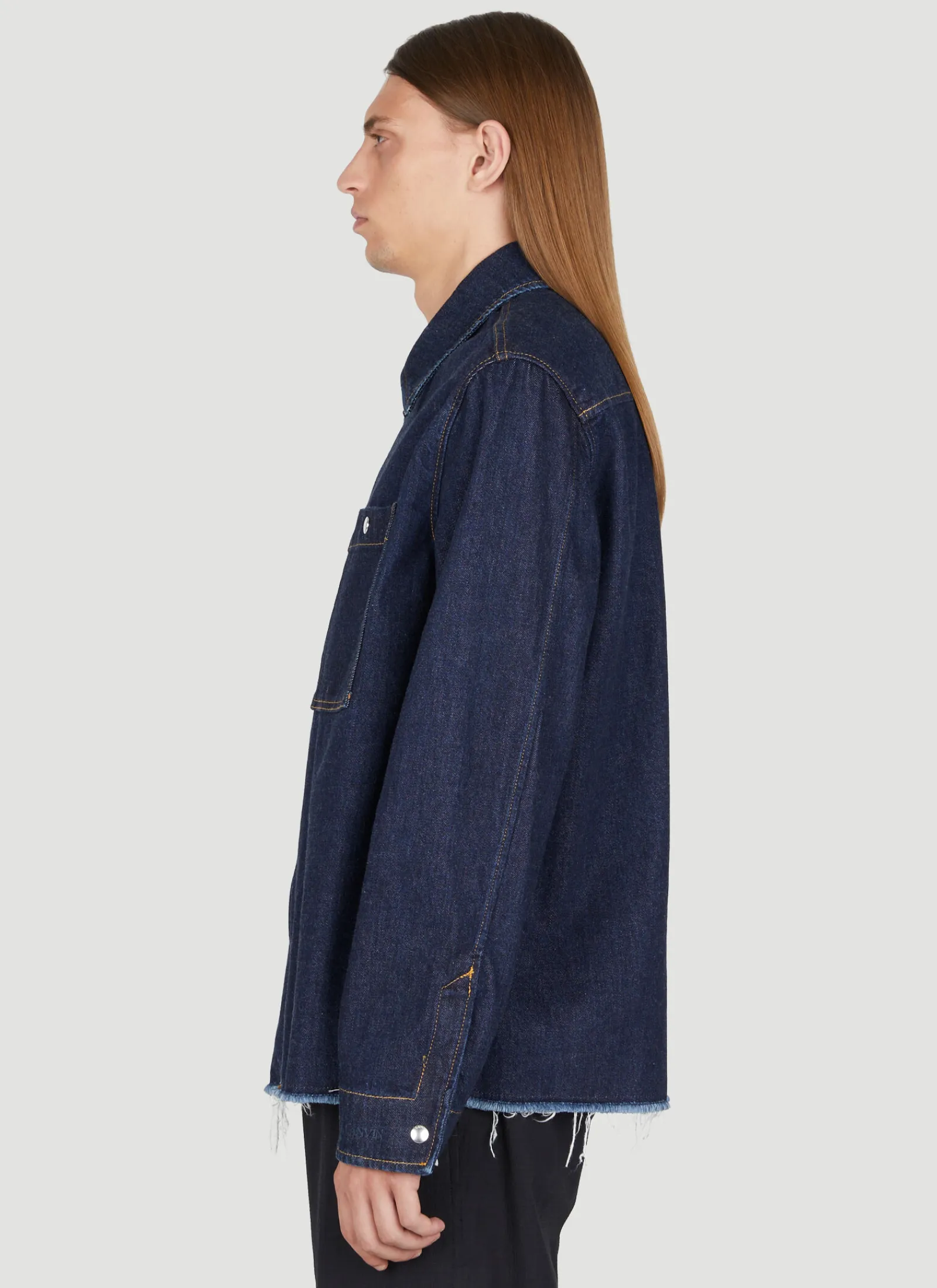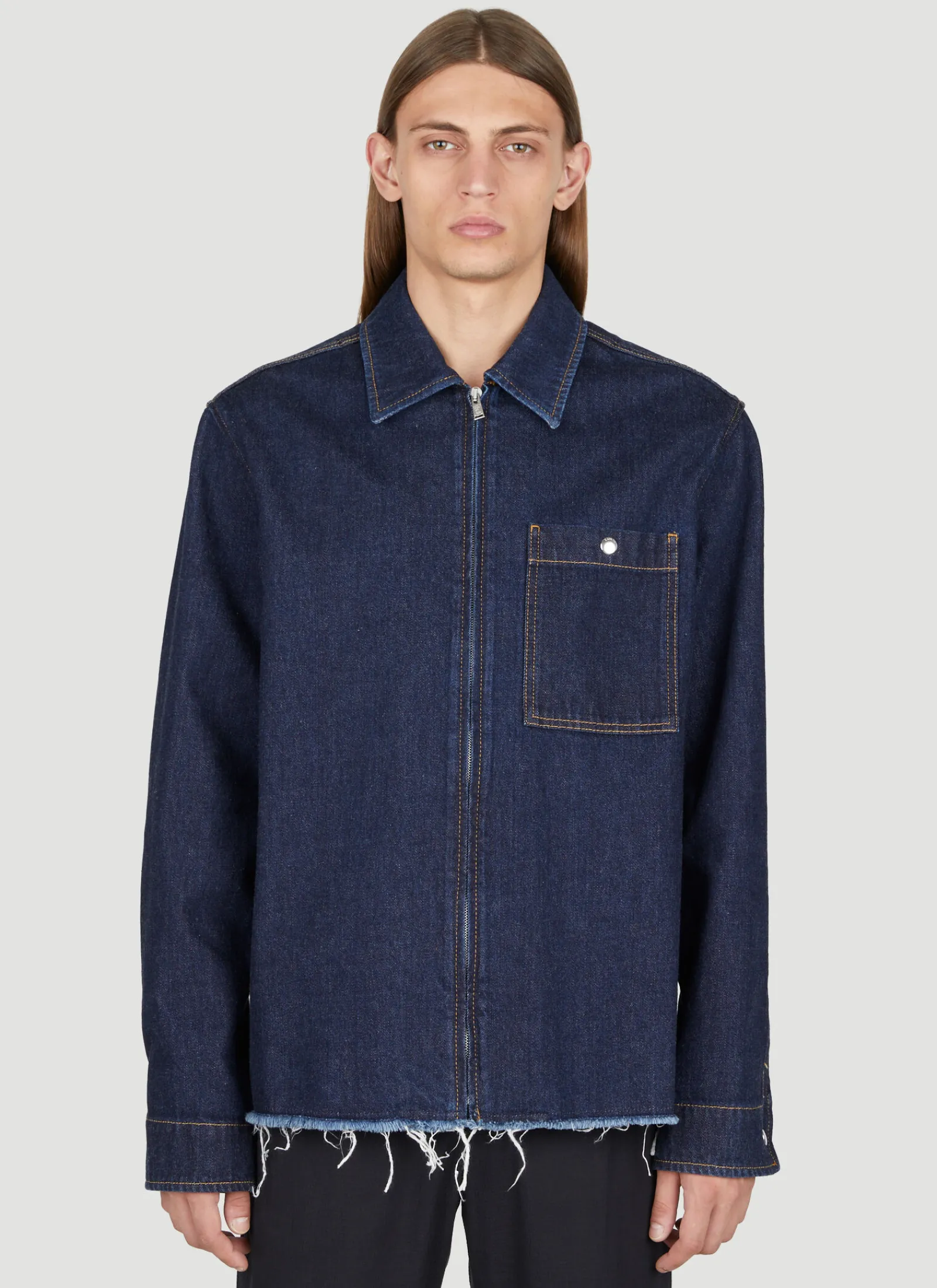 Zipped Denim Overshirt With Contrast Topstitching.