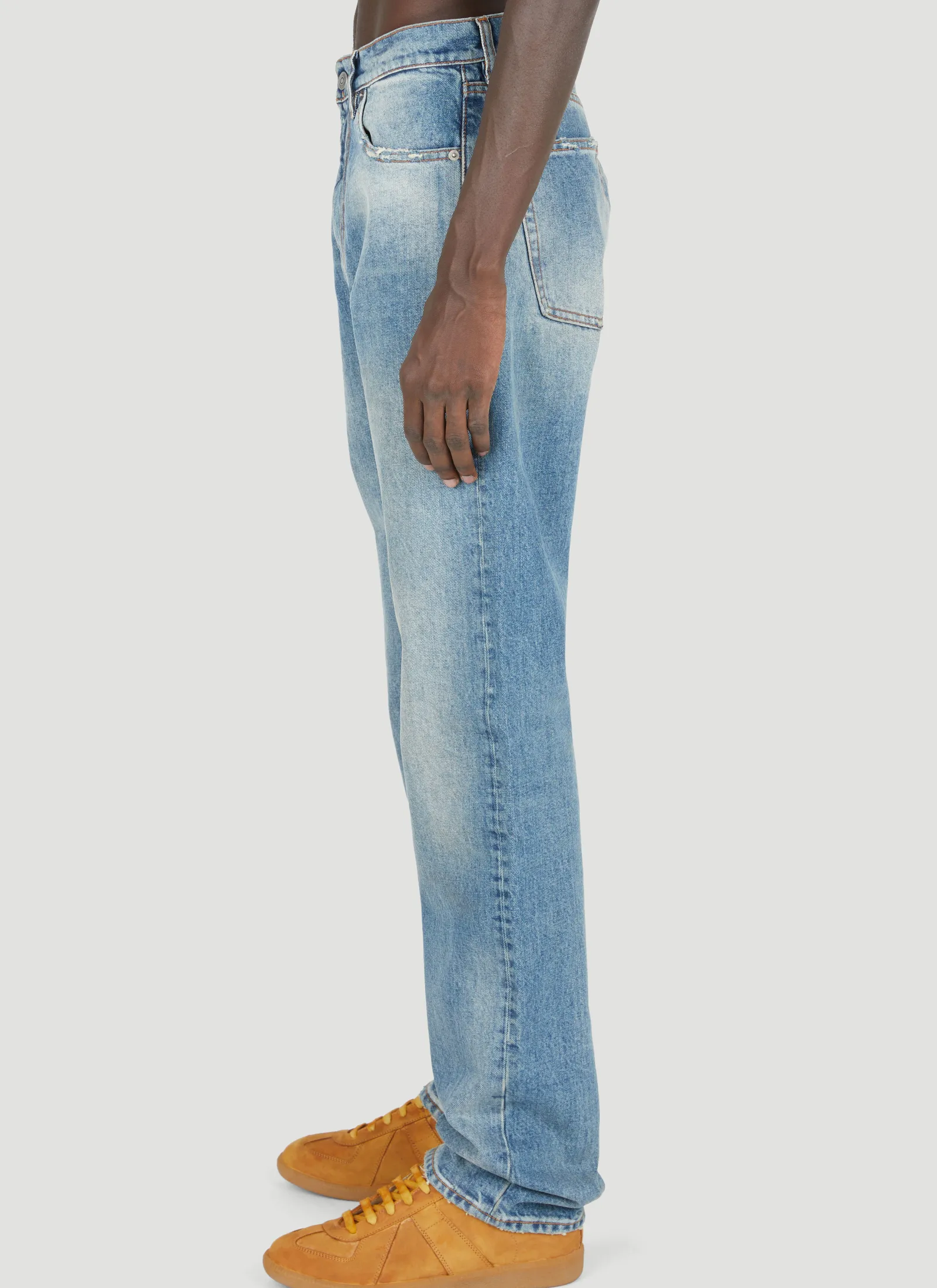 Washed Jeans With Distressed Trims.