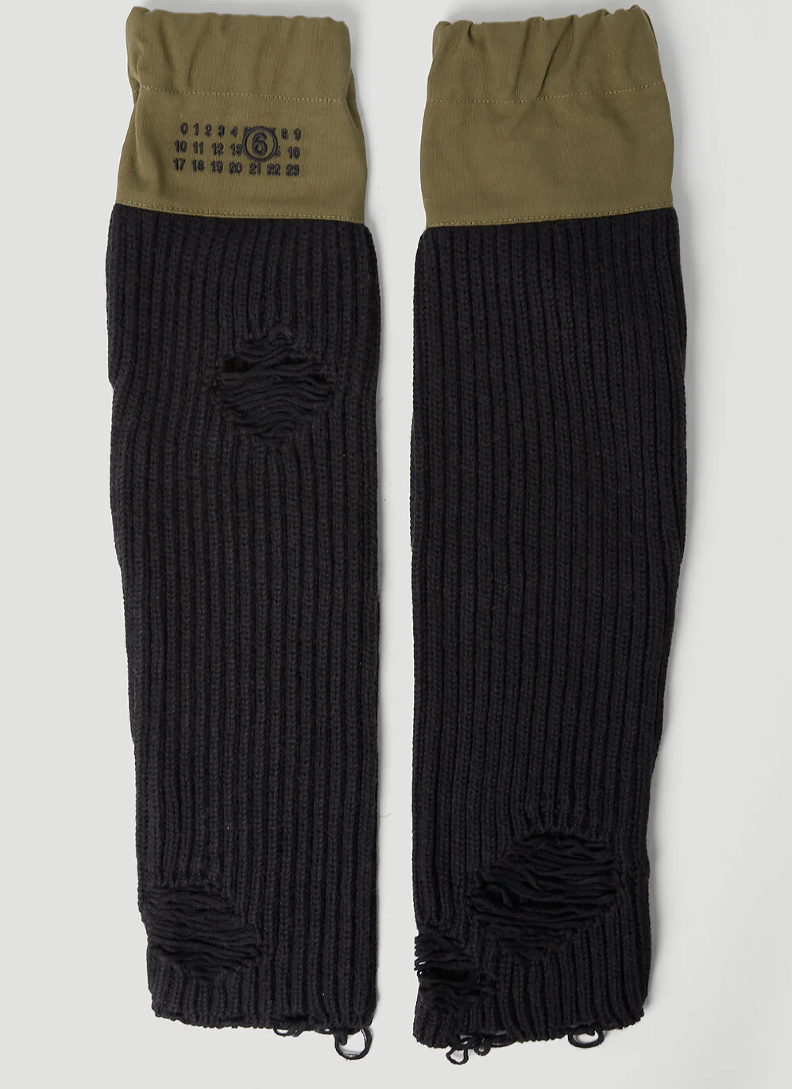 Cotton-And-Wool Blend Knit Arm Warmers With A Distressed Finish.