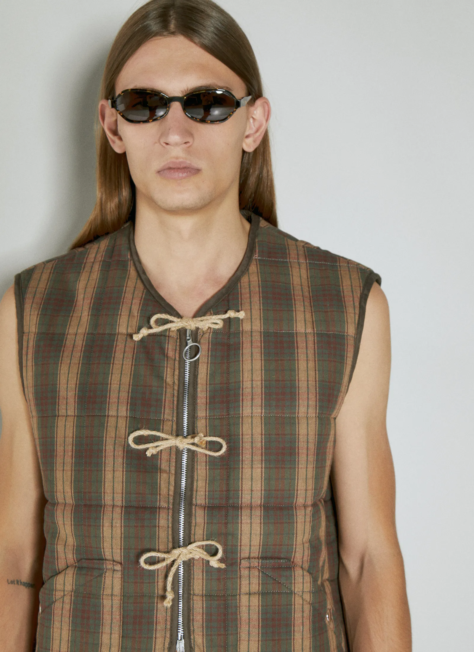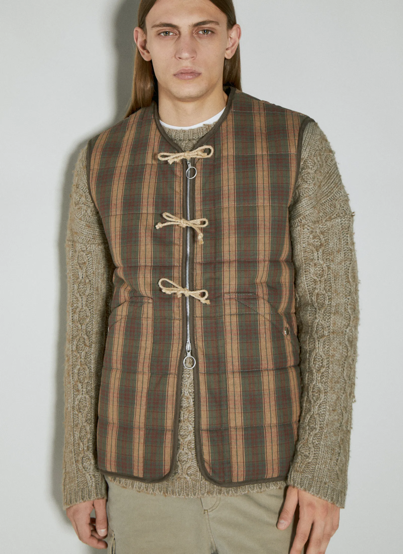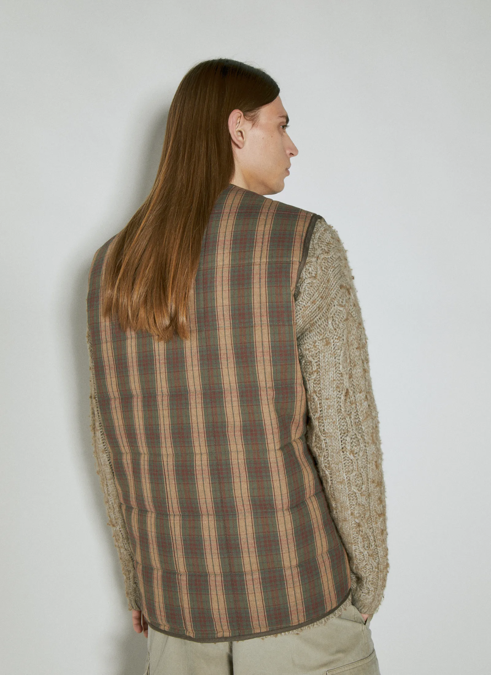 Padded Vest In Check Weave.
