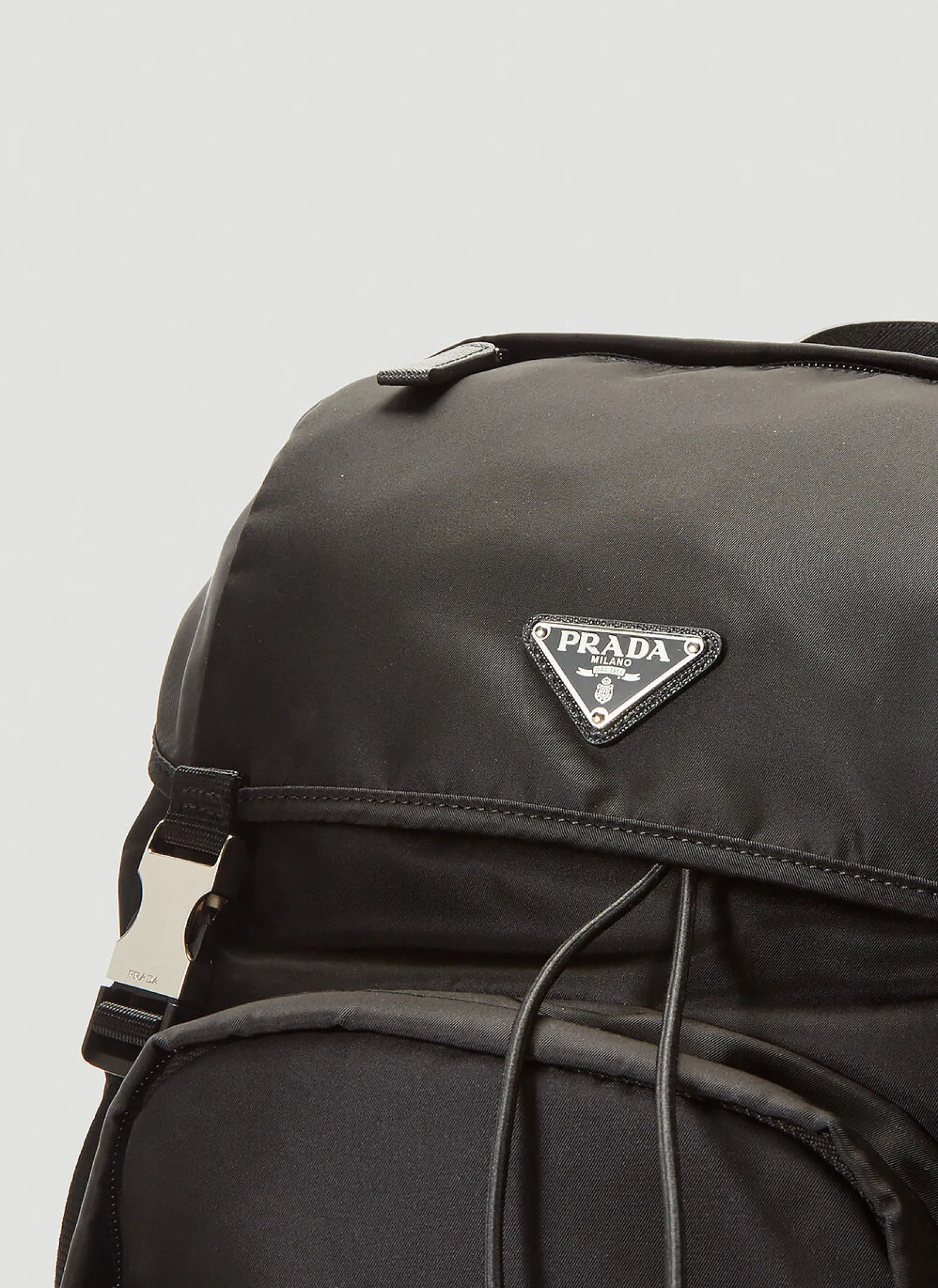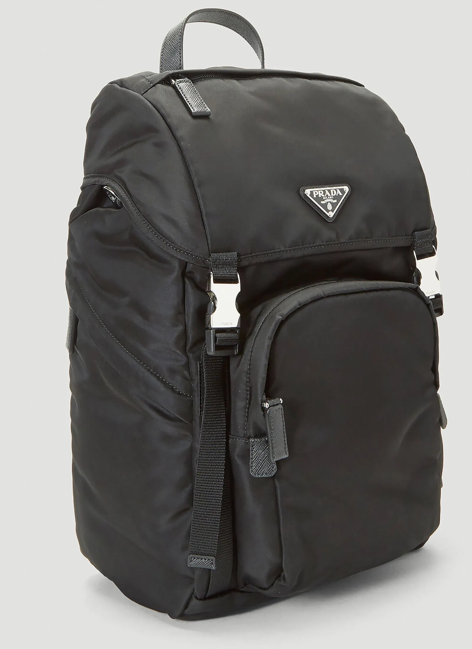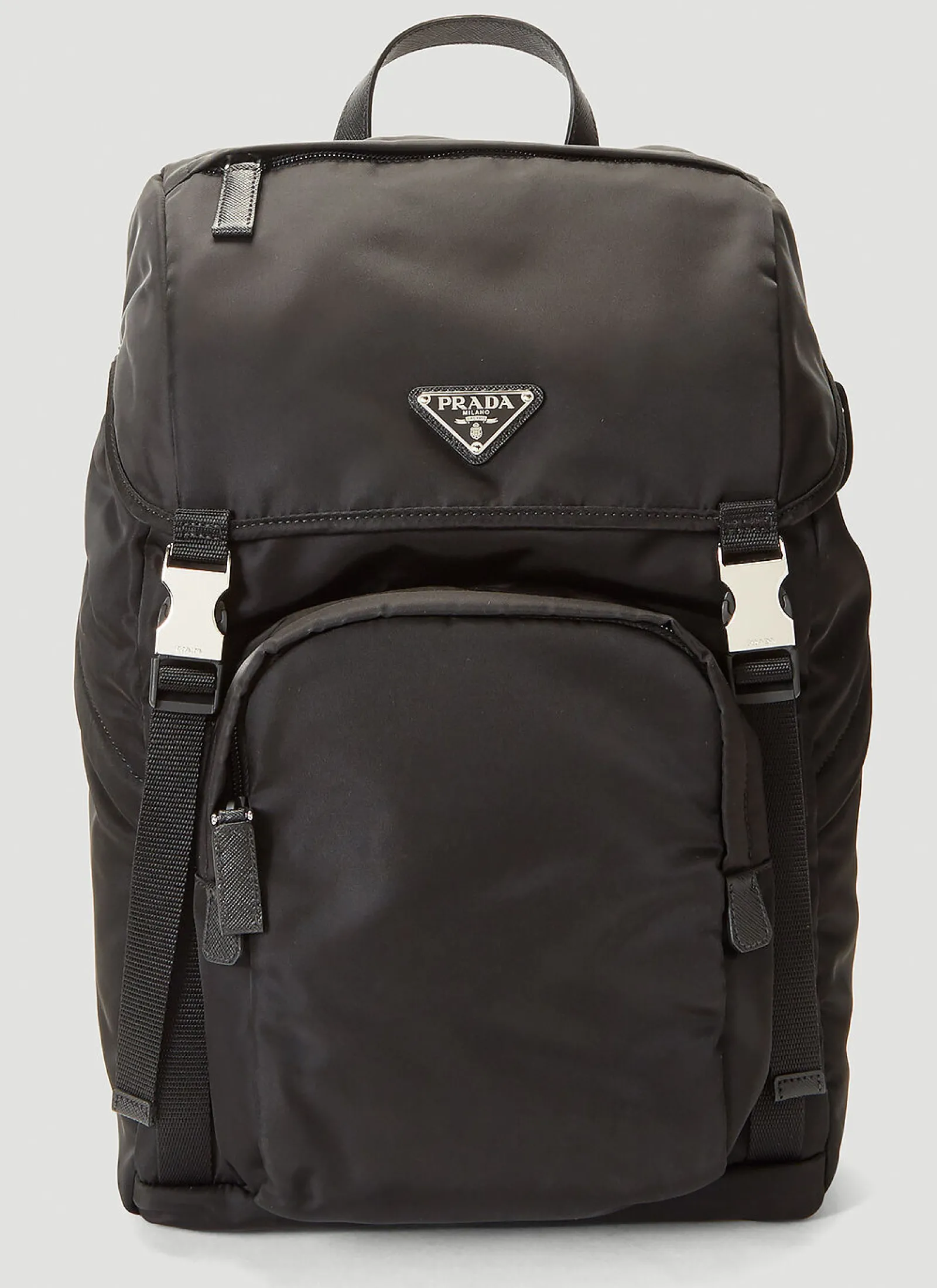 Prada, Founded In 1913 In Milan, The Iconic Luxury Fashion Brand, Headed By Miuccia Prada, Is Celebrated For Its Impeccable Detailing Along With An Often Contrary And Contradictory Approach To Design, Prada Surprises Us With A Fresh Approach Each Season. The Nylon Backpack Is Crafted From Recycled Nylon In A Soft Sheen Finish, Featuring A Buckle Fastened Flap Closure, Padded Shoulder Strap And Signature Enamel Triangle Logo Detail.