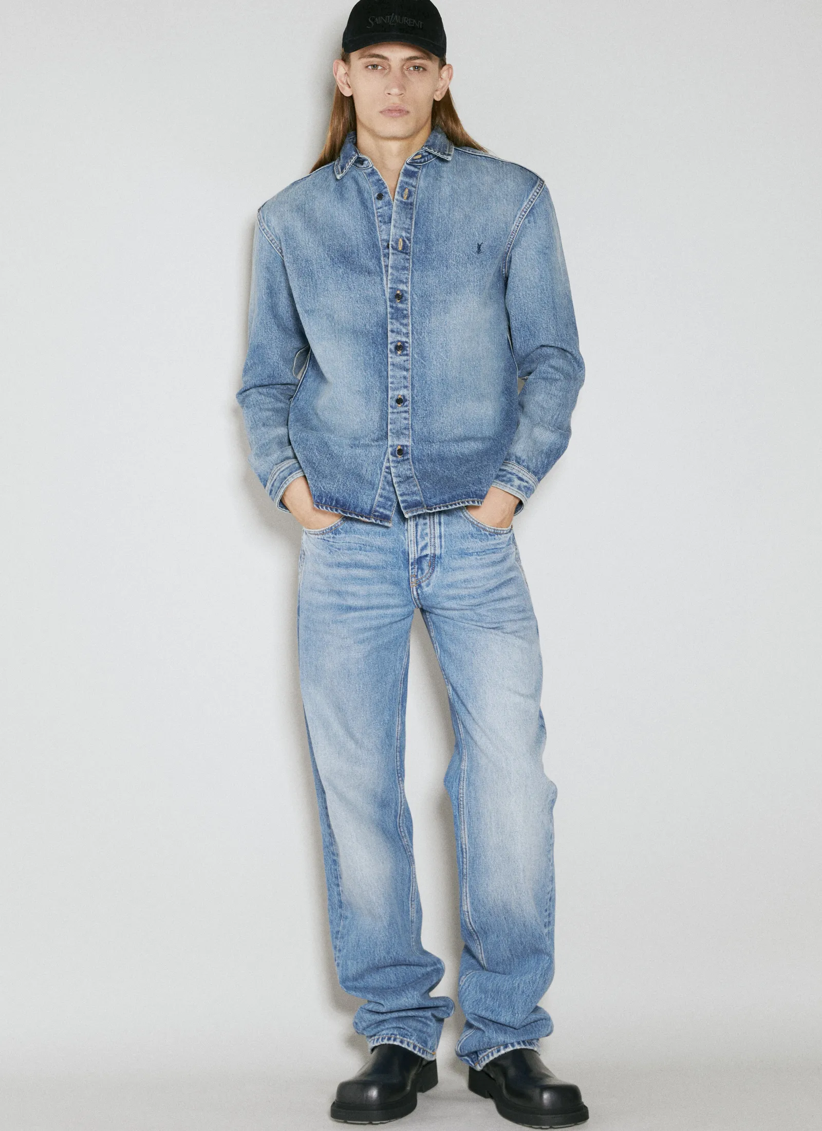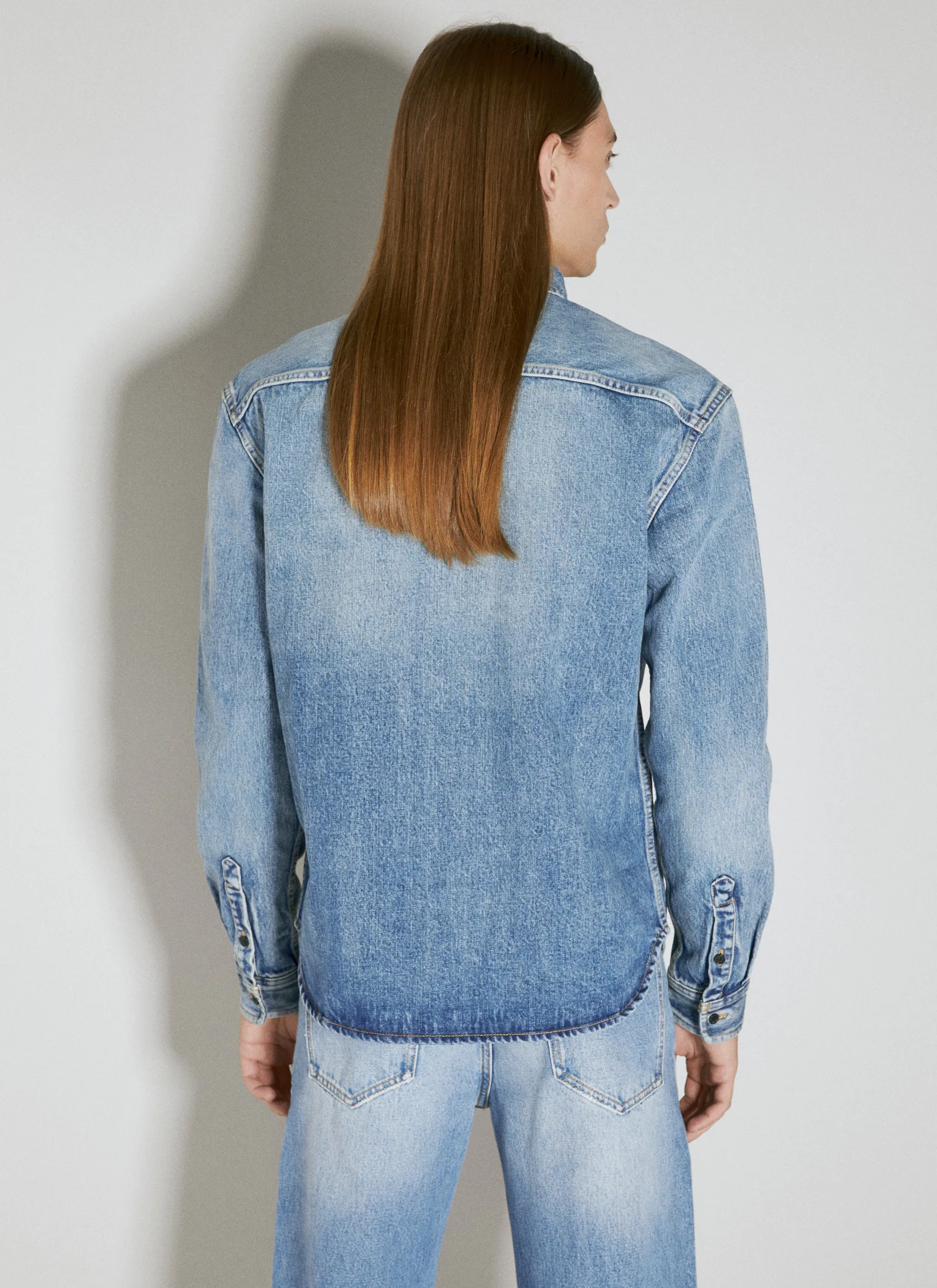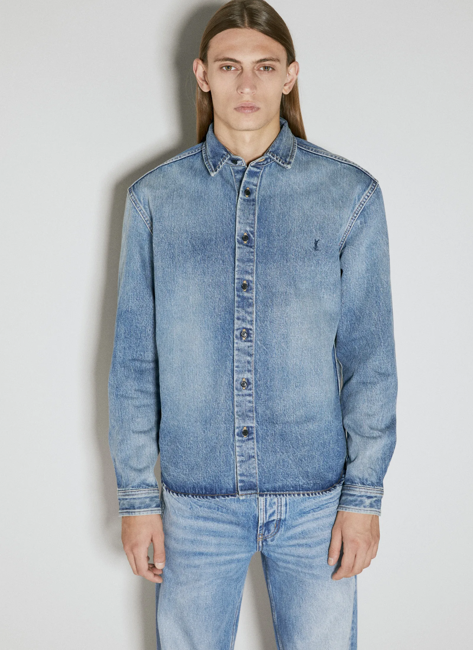 Relaxed Overshirt In Denim With Chest Logo Embroidery.