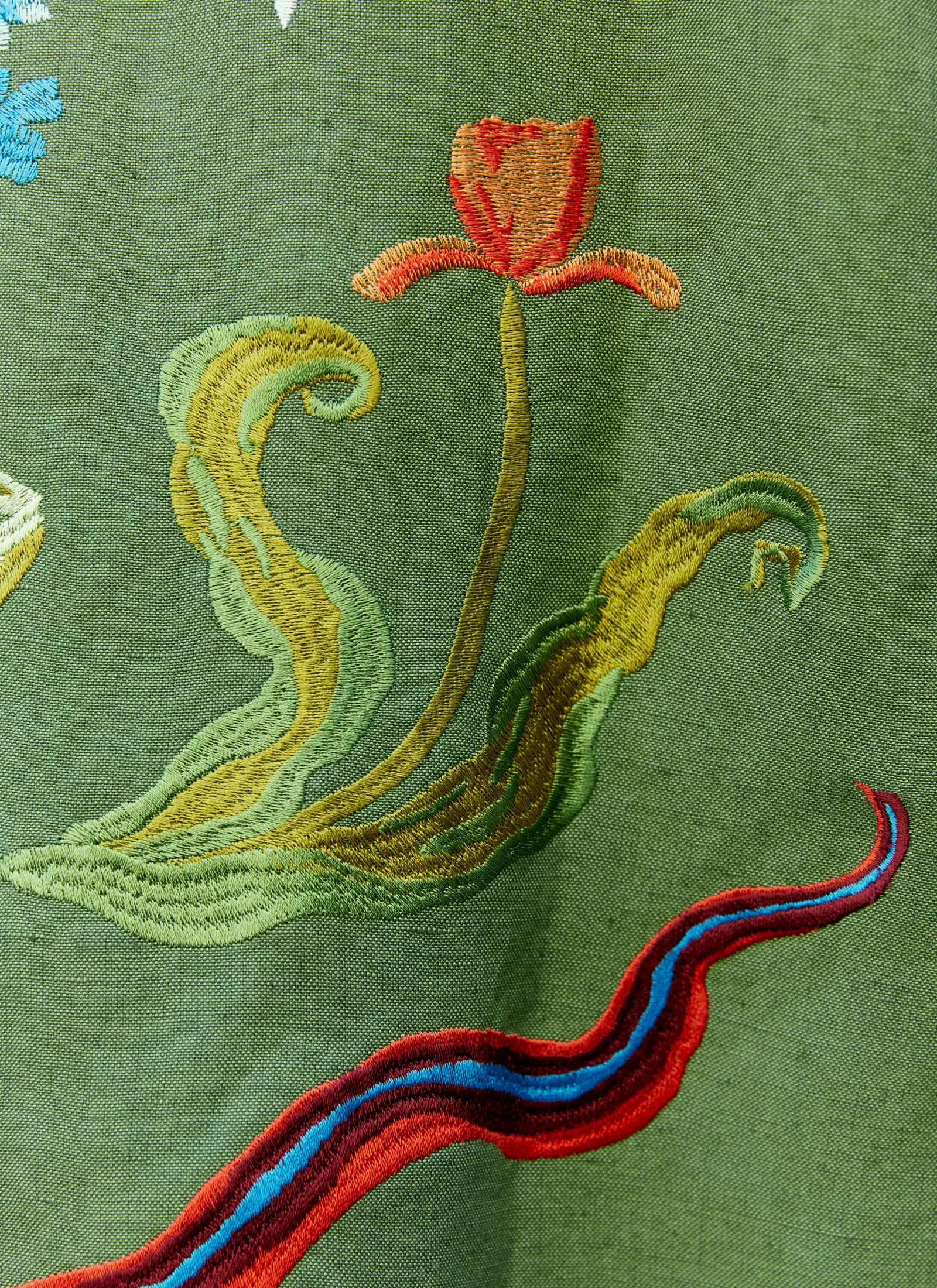 Linen-Blend Weave Shirt With Floral Embroidery.