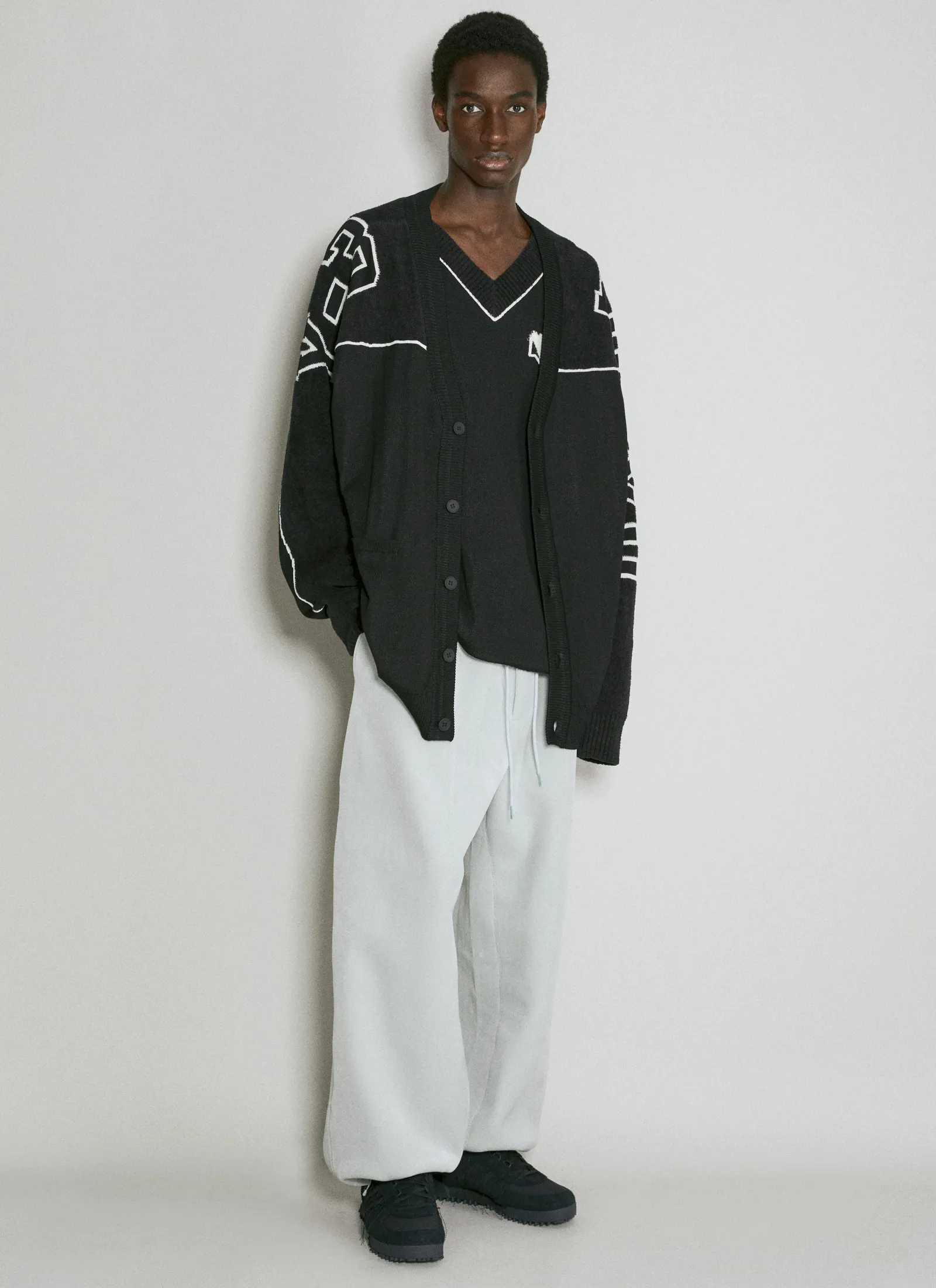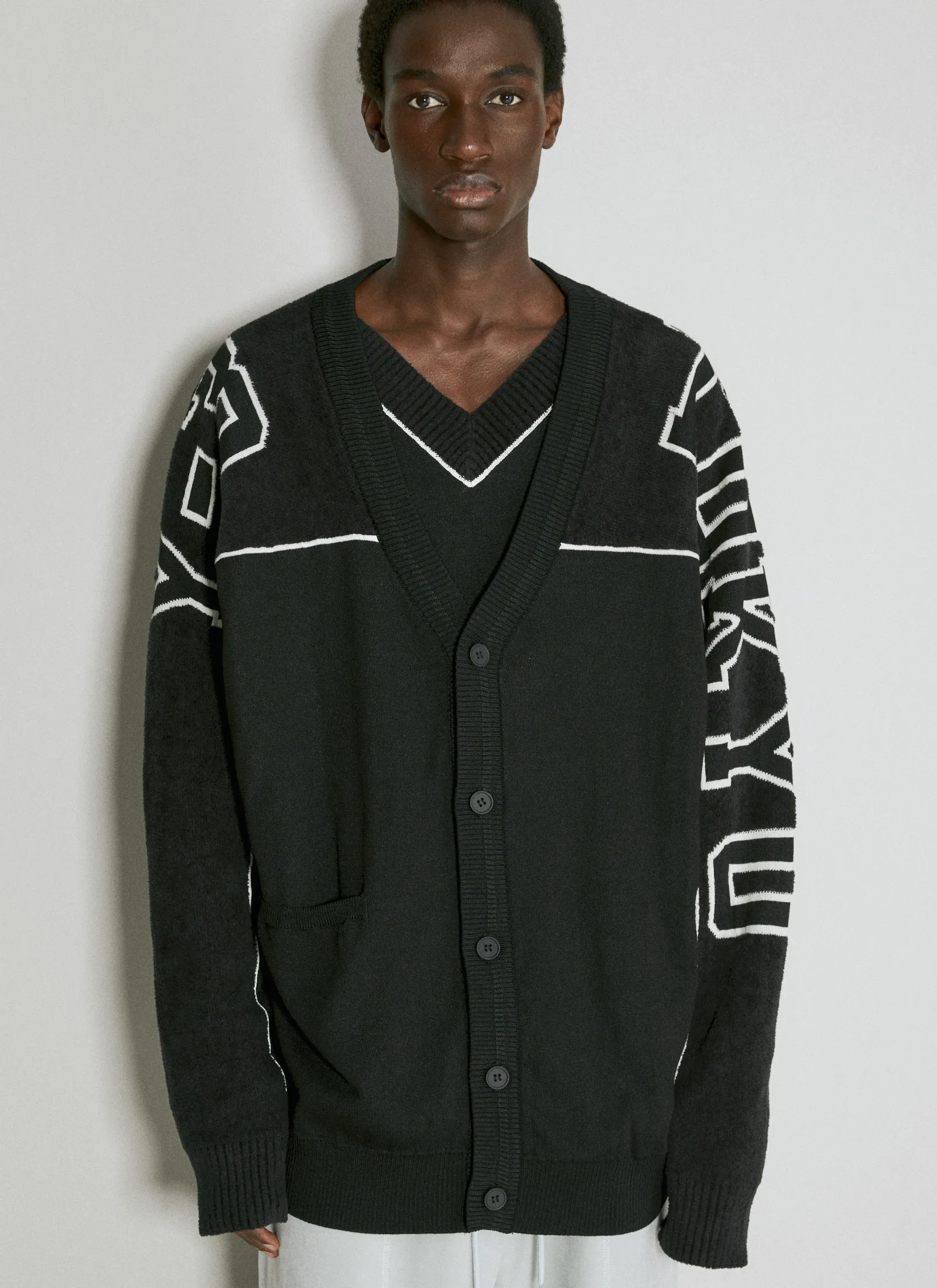 Logo Intarsia Knit Cardigan With Front Patch Pockets.