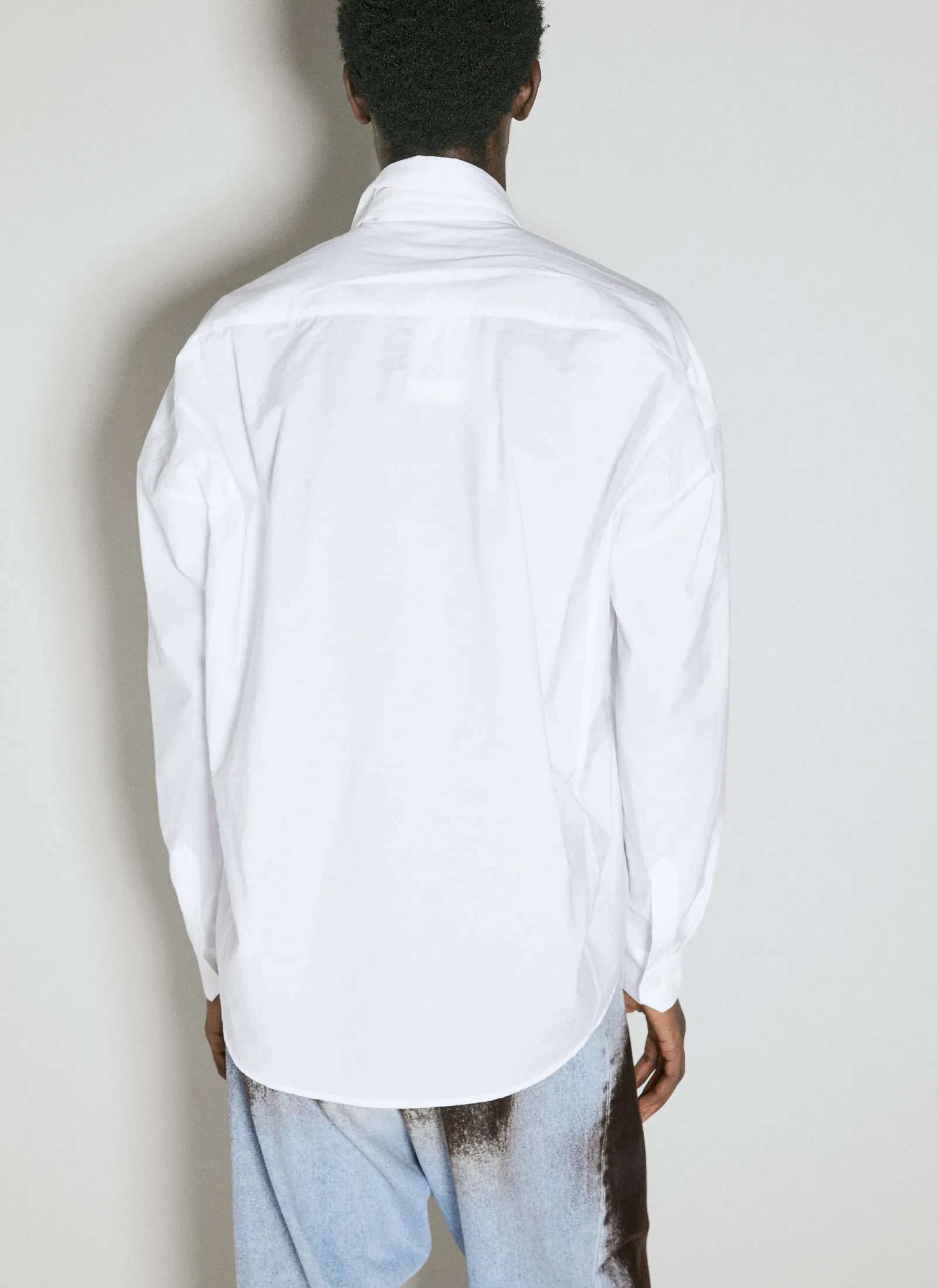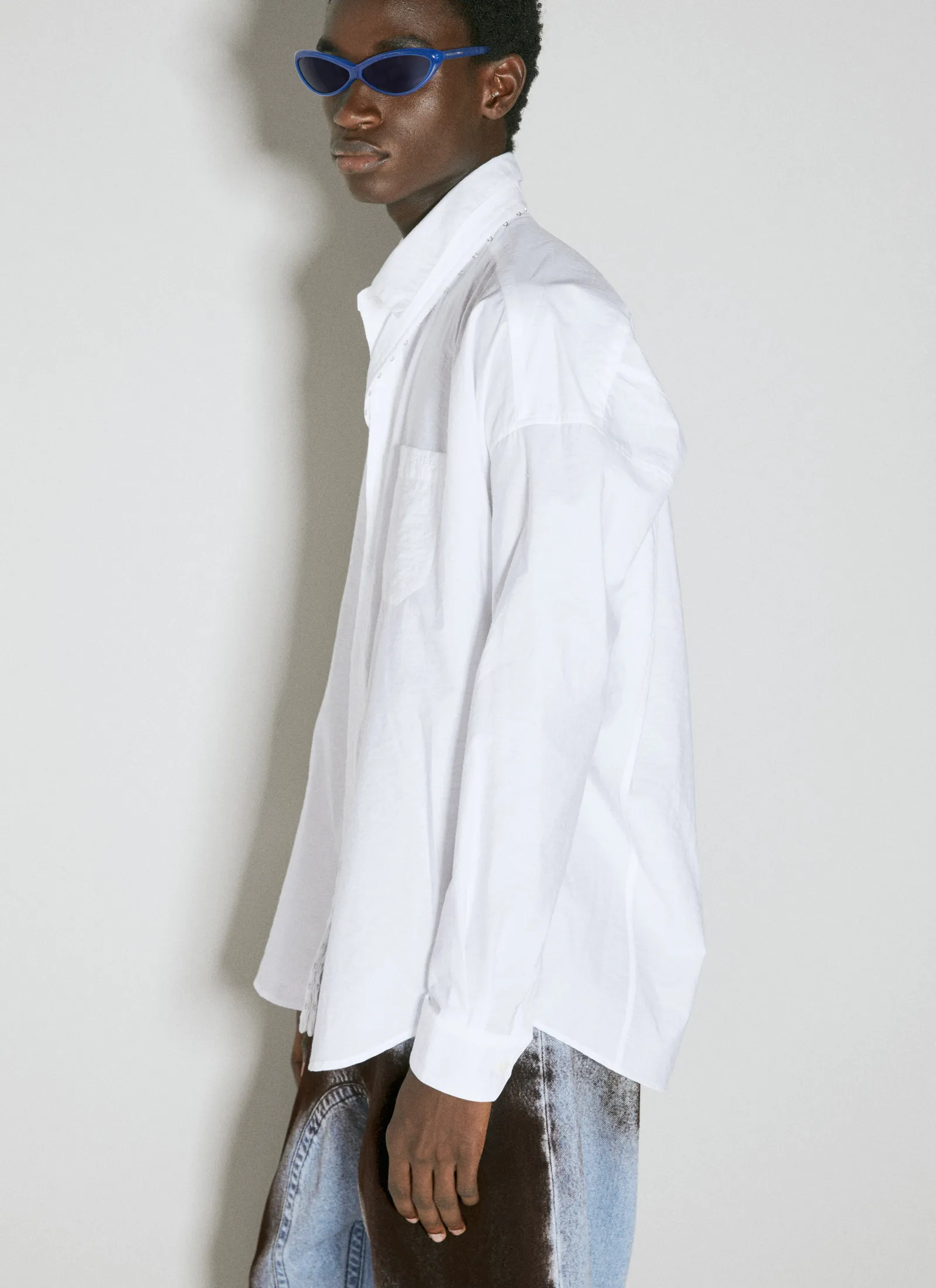 Hook And Eye Shirt In Cotton With Extended Placket.