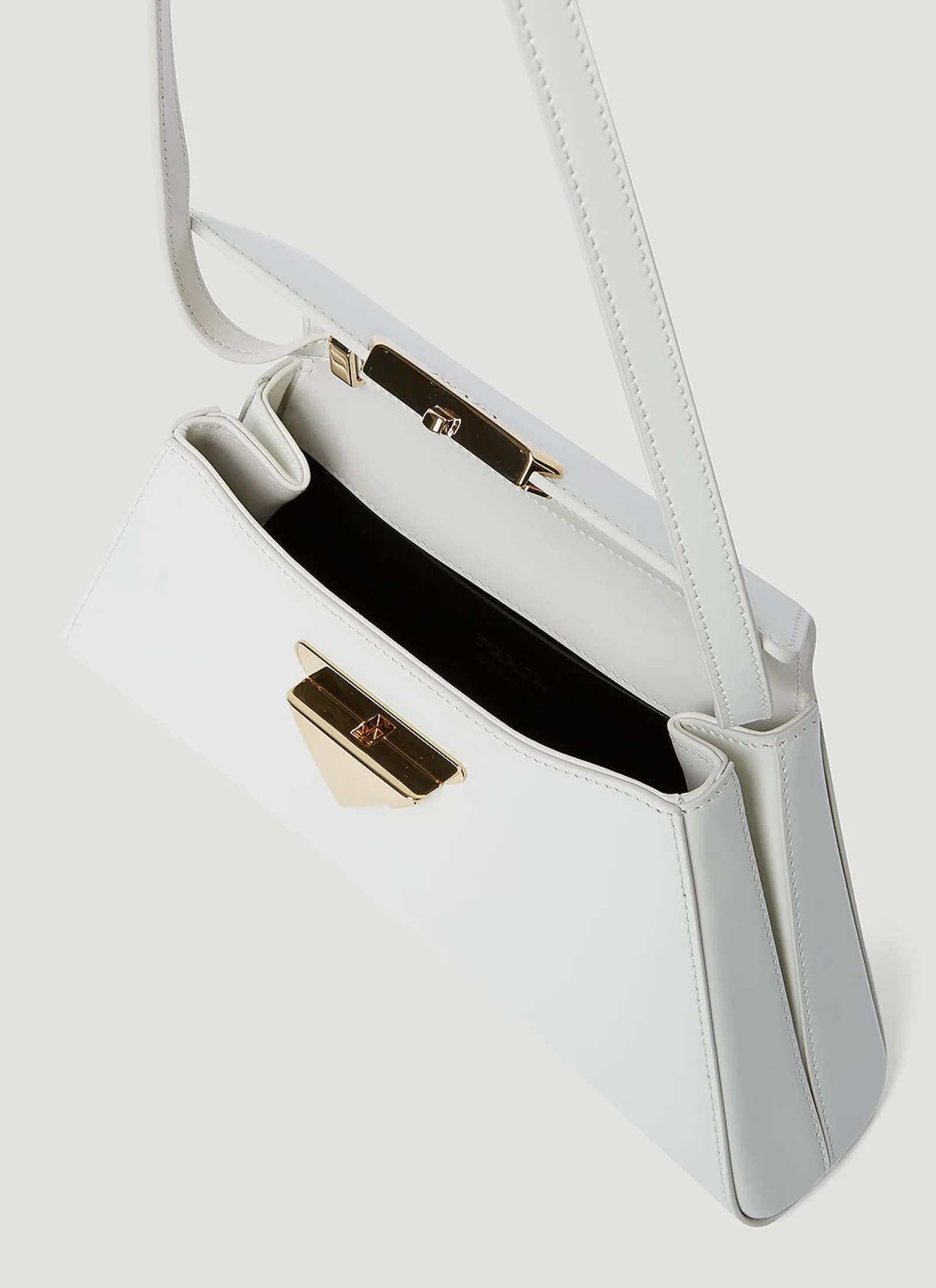 Geometric Shoulder Bag In Gloss Leather Finish.