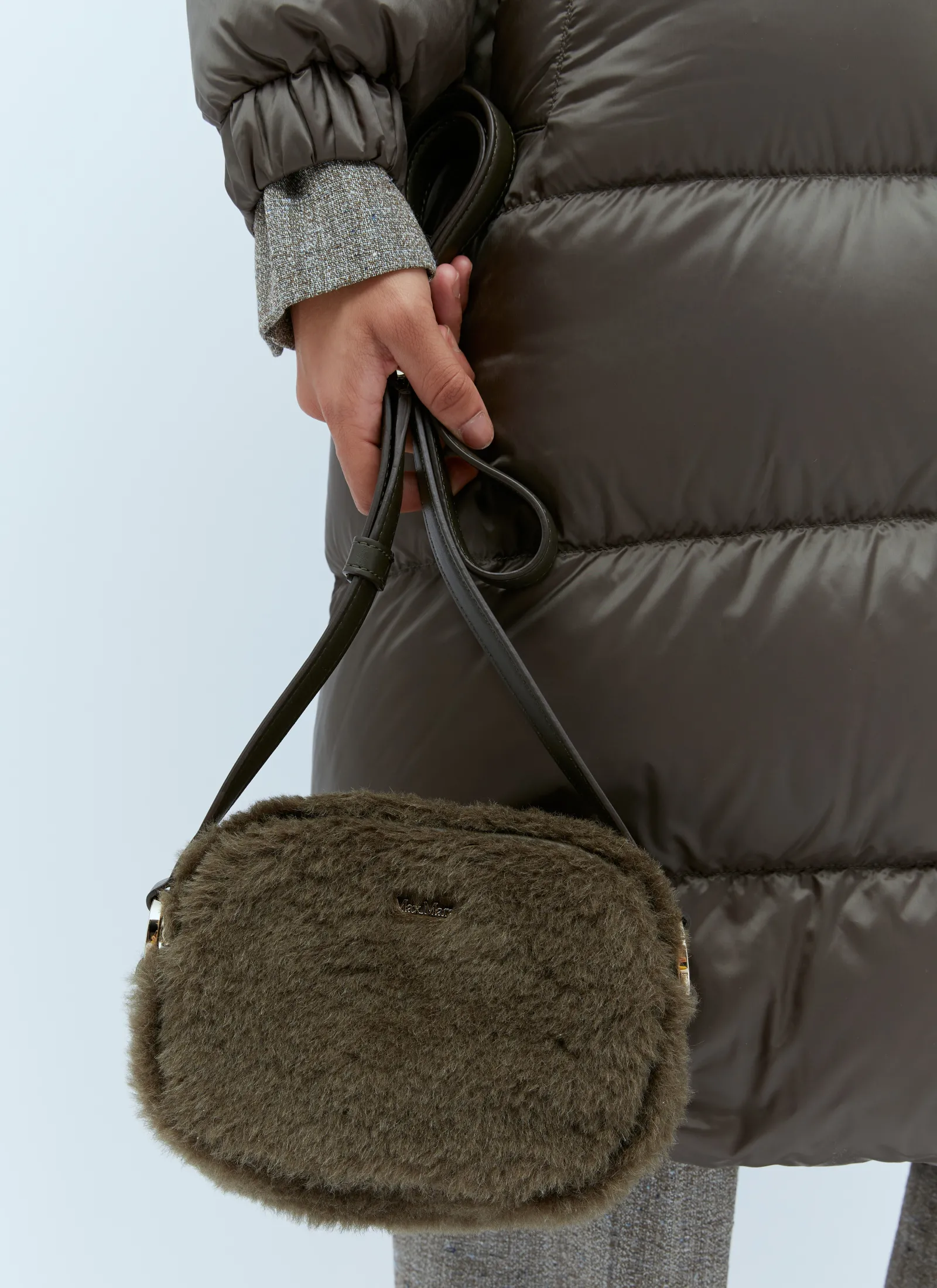 Teddy Camera Bag In Wool Blend With Front Logo Plaque.