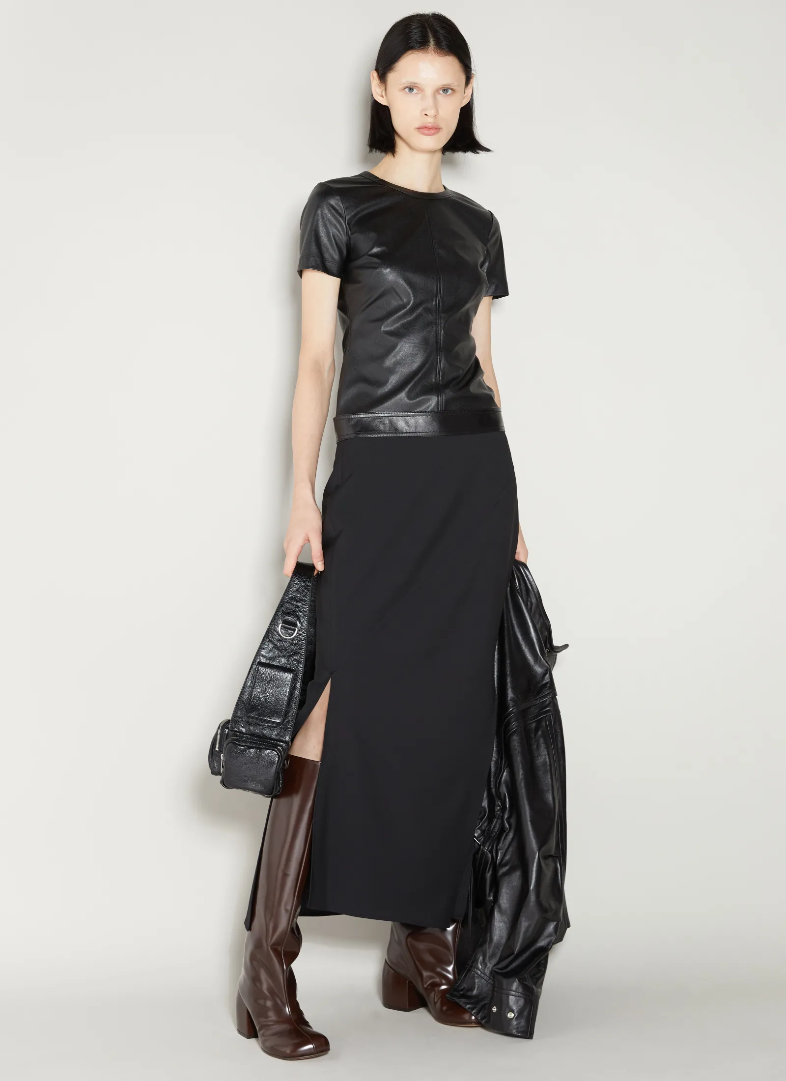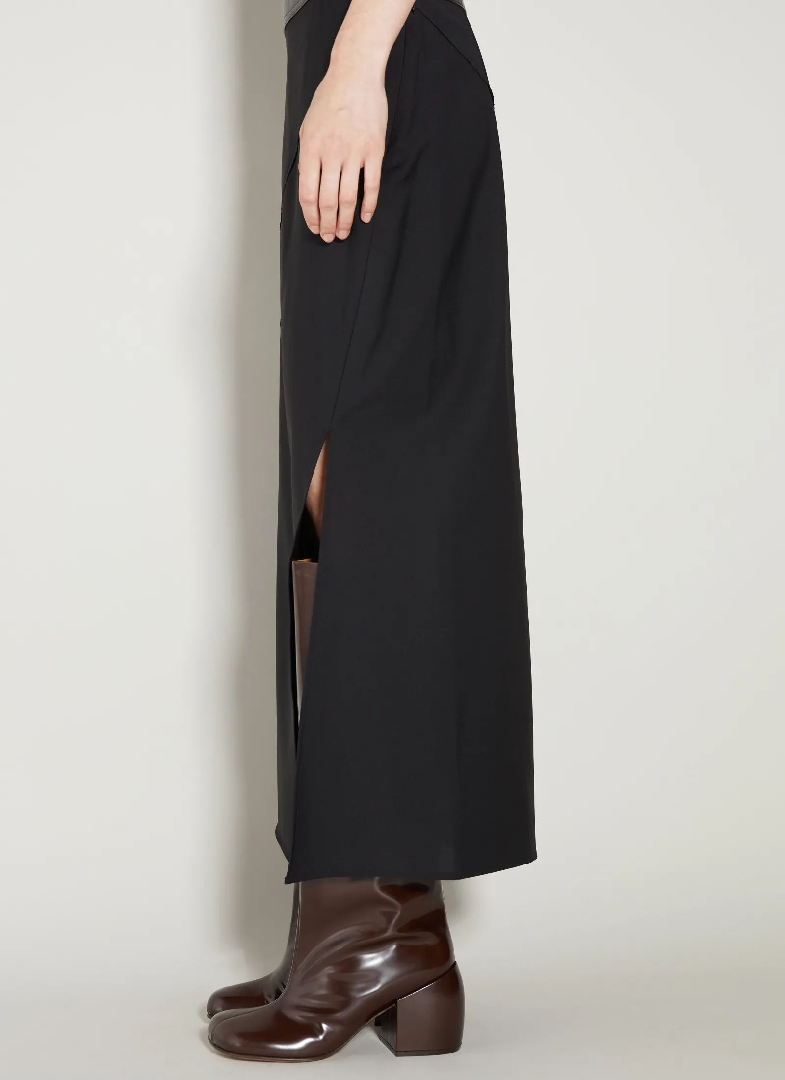 Twisted Stretch Skirt With Leather Waistband.