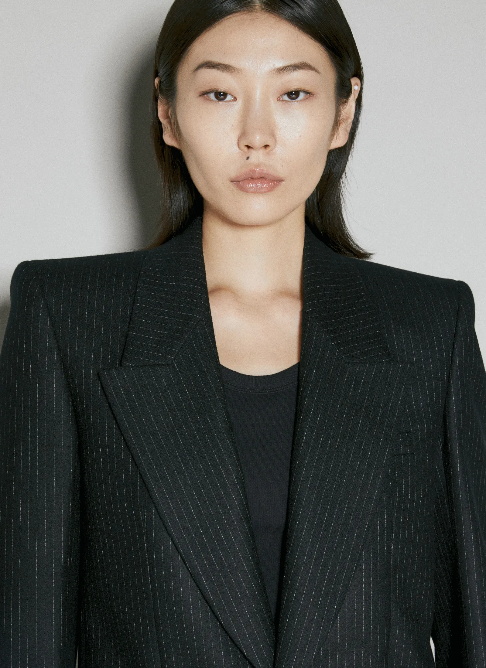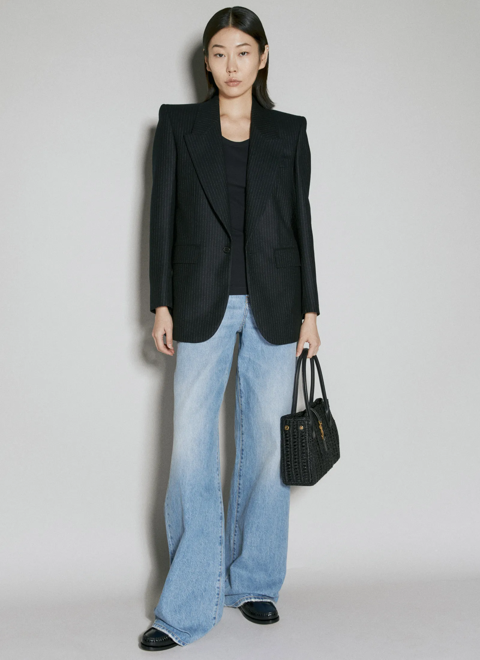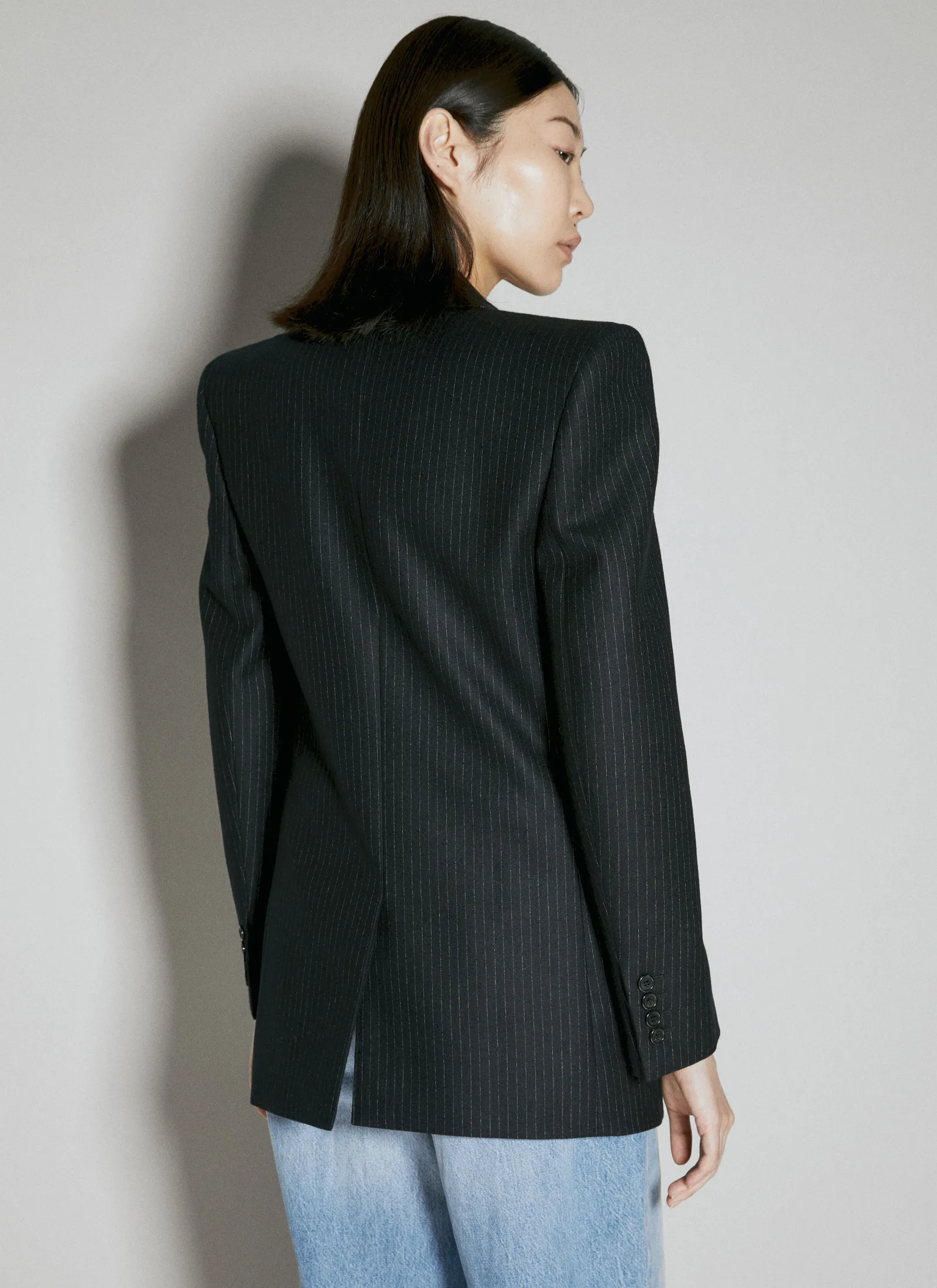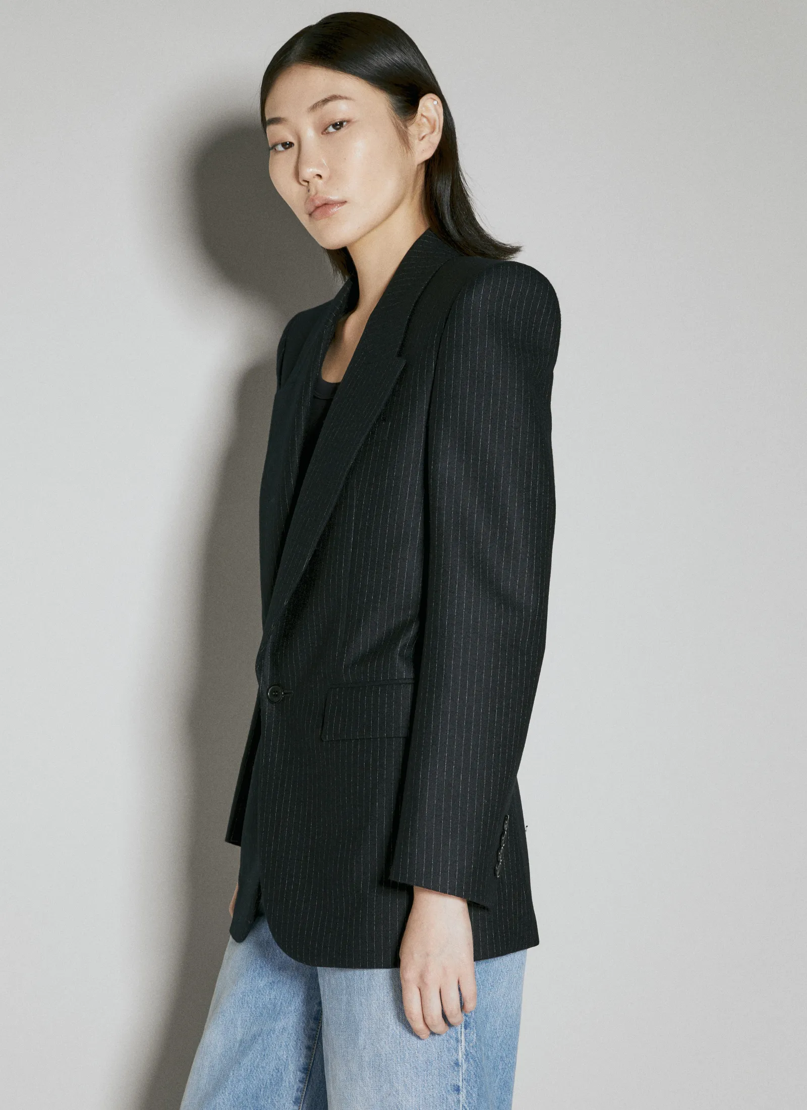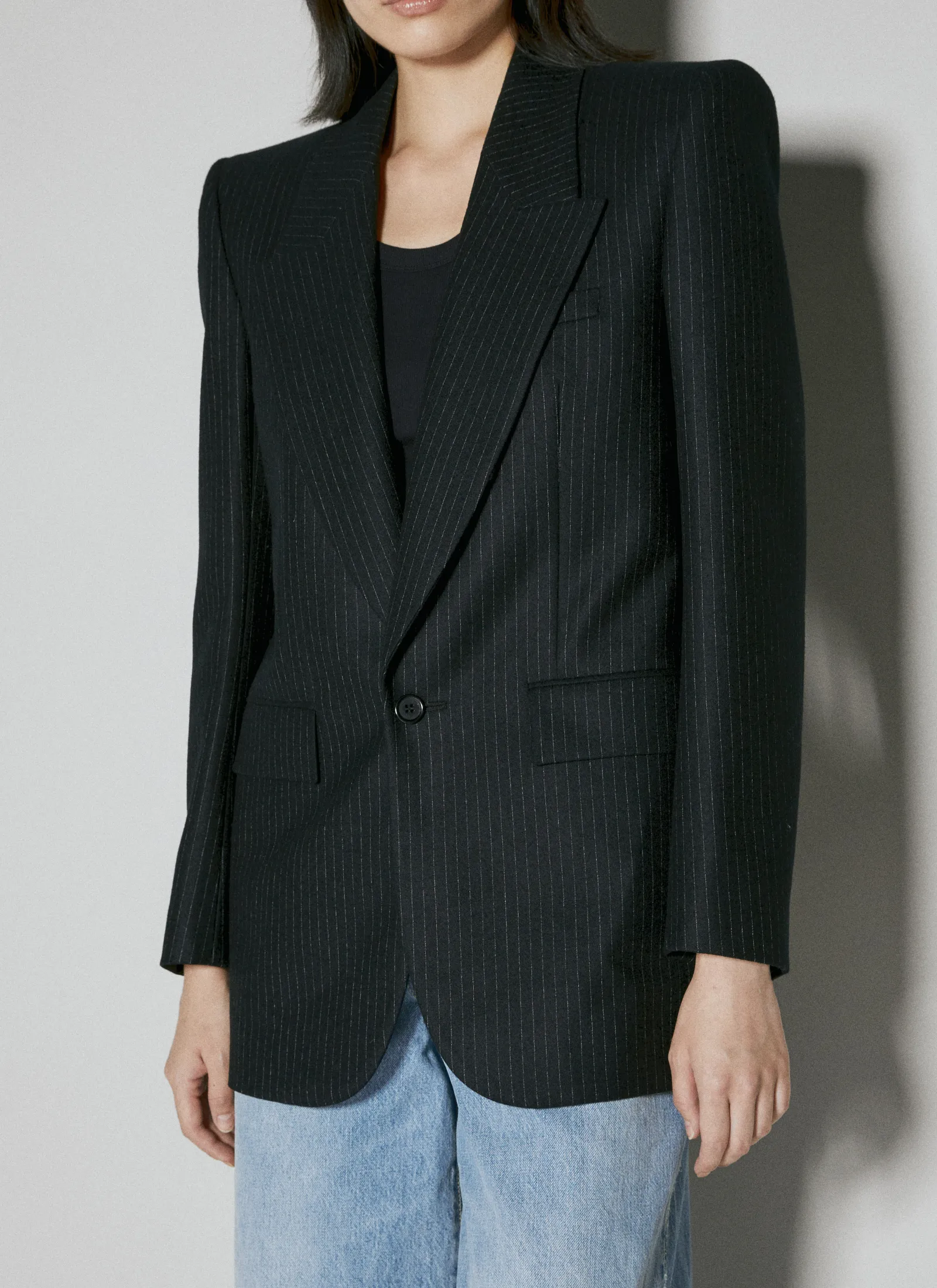 Wool Pinstripe Blazer In Plain Weave.